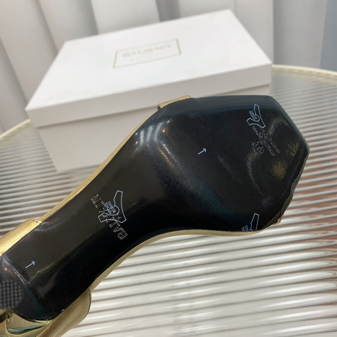 BALMAIN 25S METAL BUCKLE HIGH HEELS 95MM IN GOLD CALFSKIN