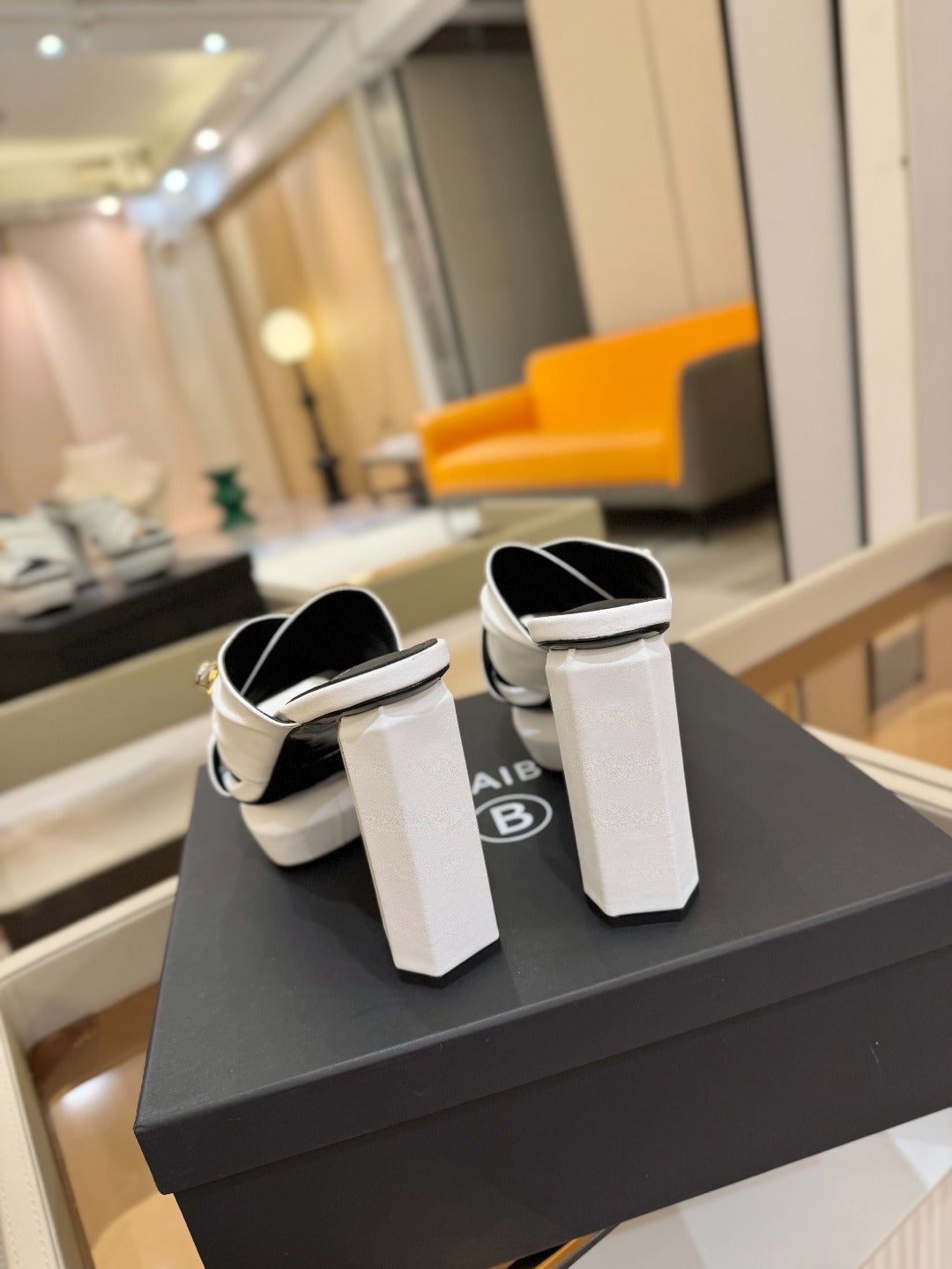 BALMAIN 25S WEDGE HEEL SANDALS 100MM IN WHITE CALFSKIN