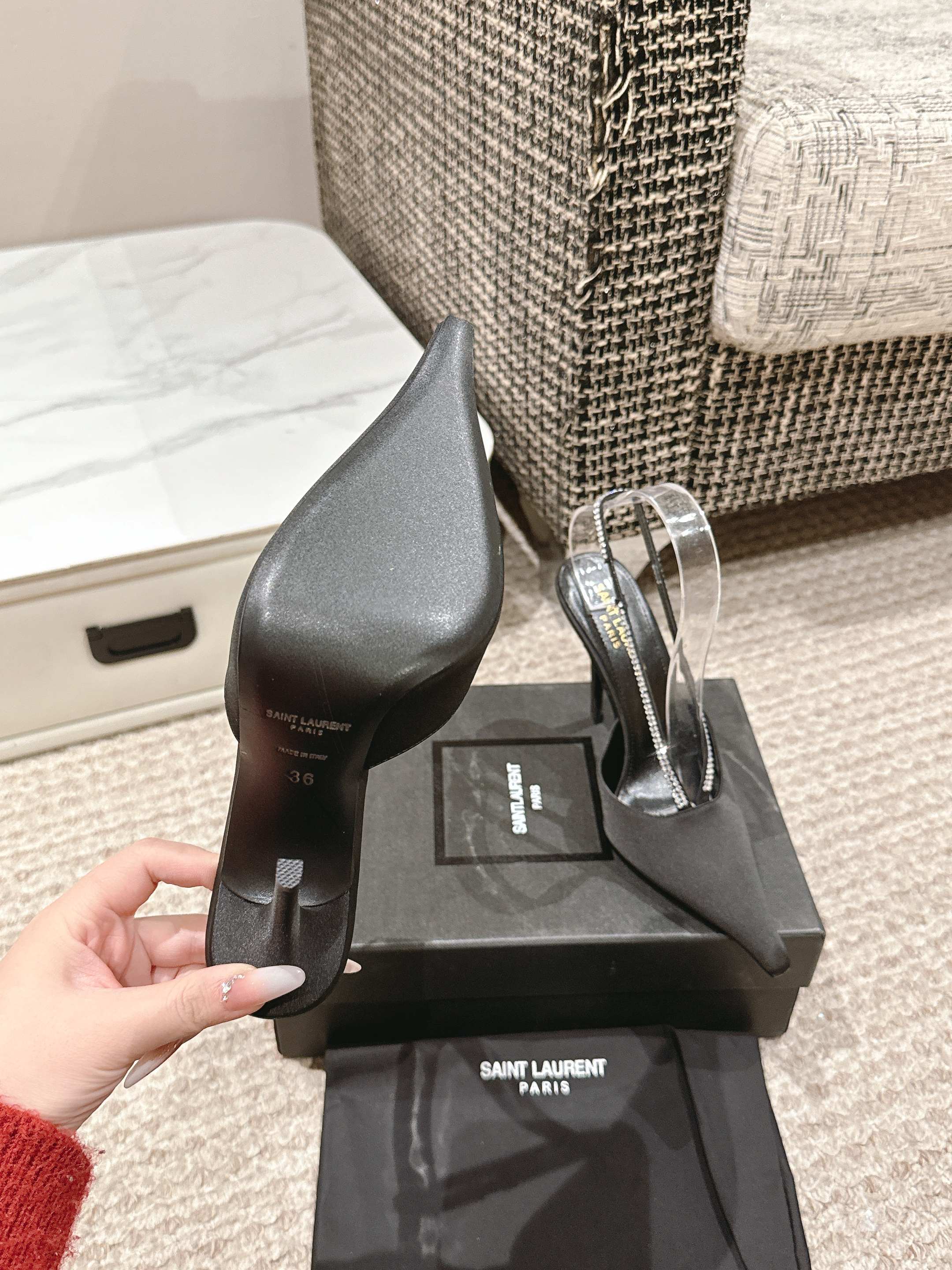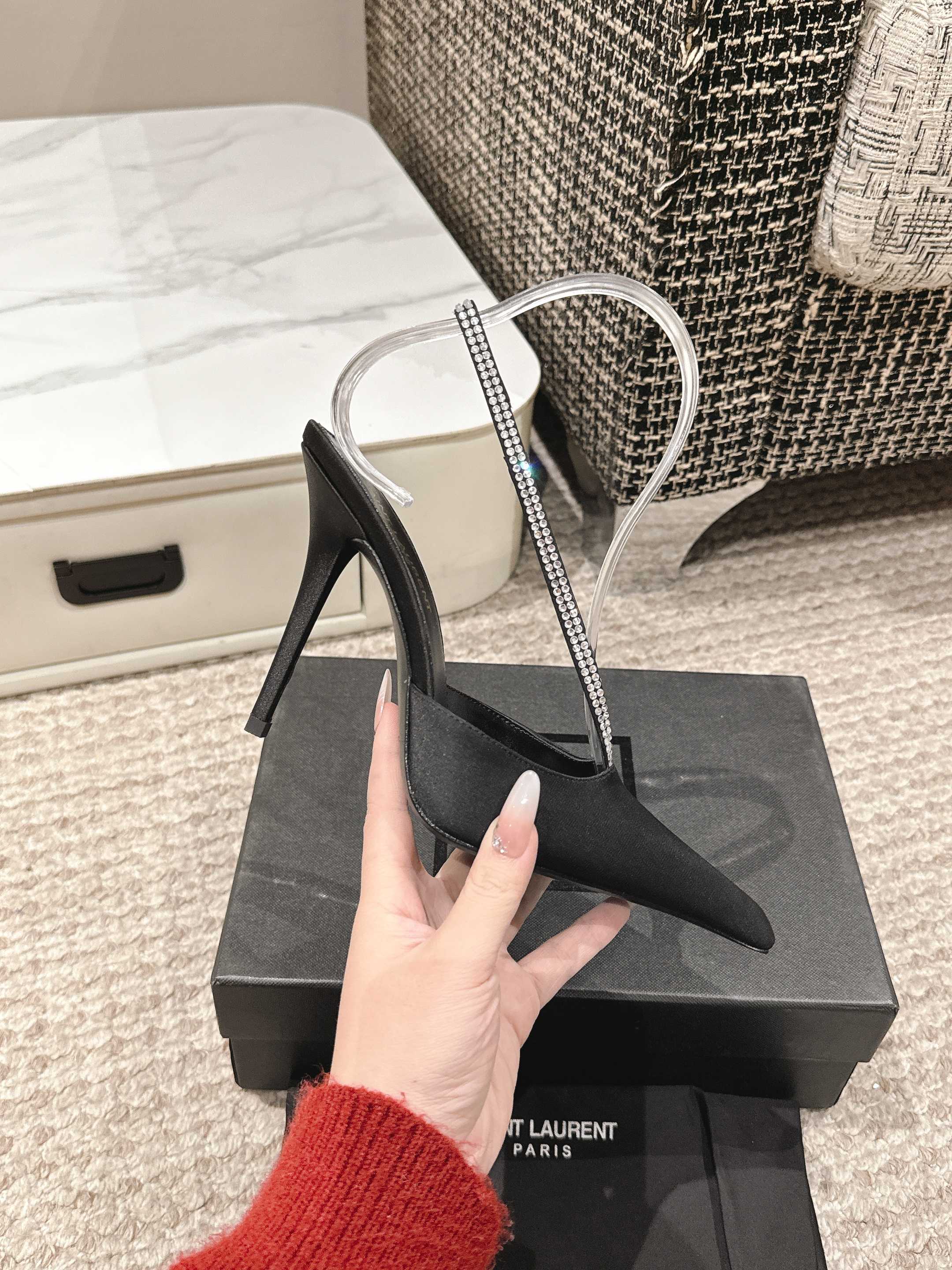 BARBARA 90 EMBELLISHED  BLACK SATIN MULES WITH RHINSTONES