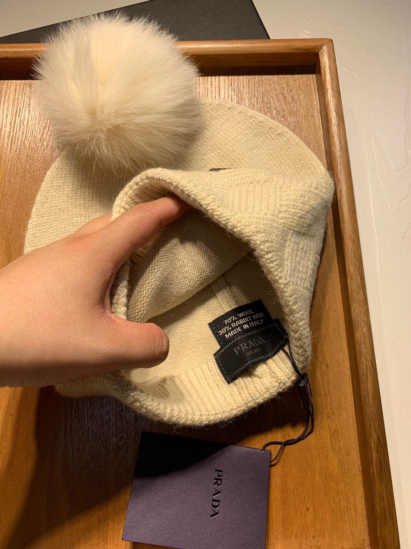 BEANIE HAT IN BISQUE BEIGE WOOL AND RABBIT FUR 361433