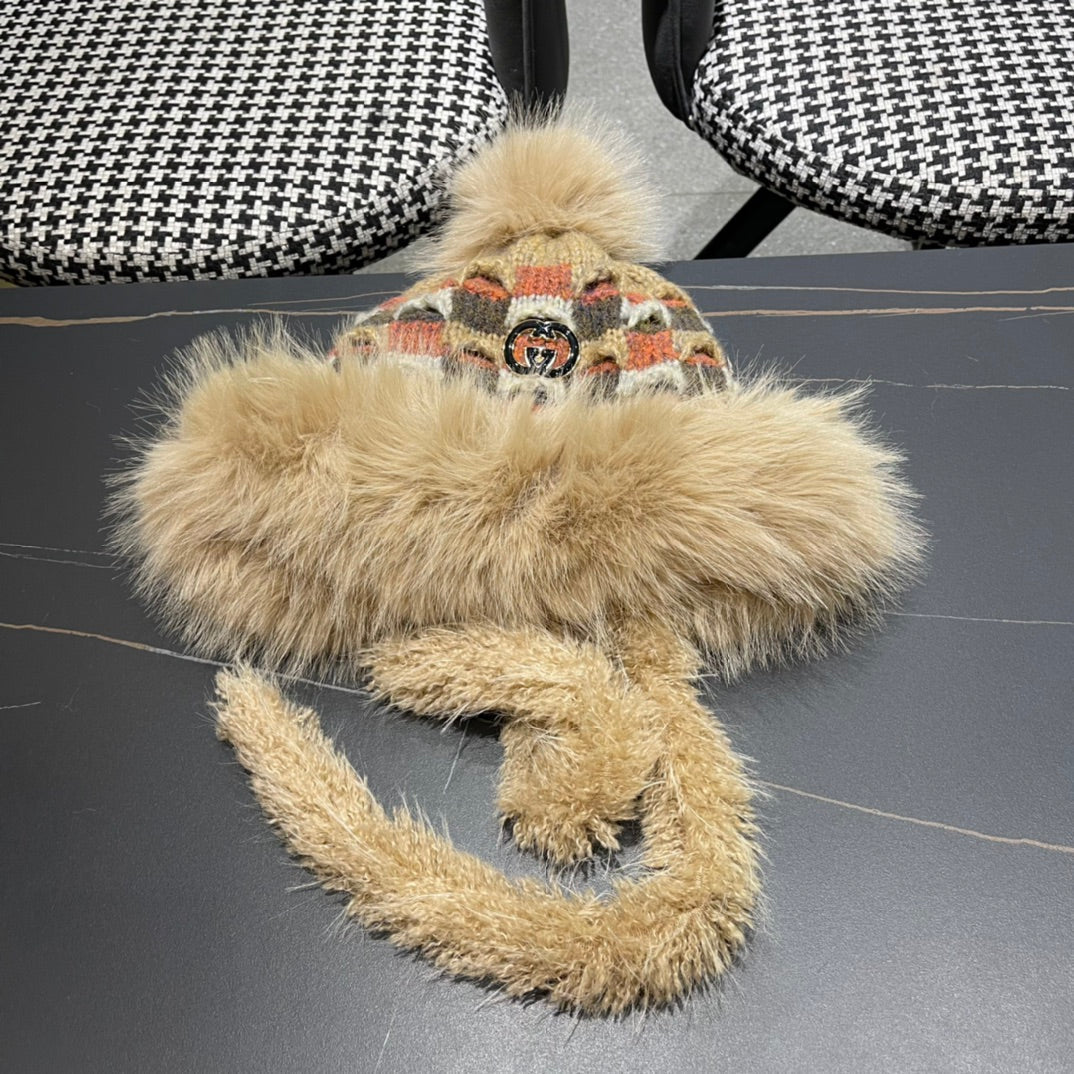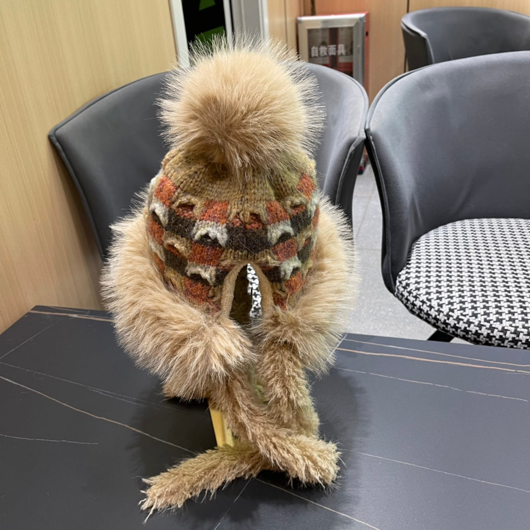 BEANIE HAT IN COLORFUL WOOL AND RABBIT FUR 392117