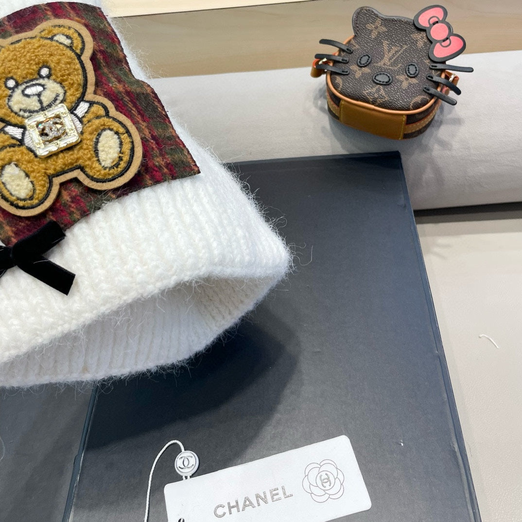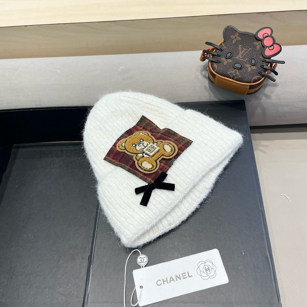 BEANIE HAT IN WHITE WOOL WITH BOW 421253