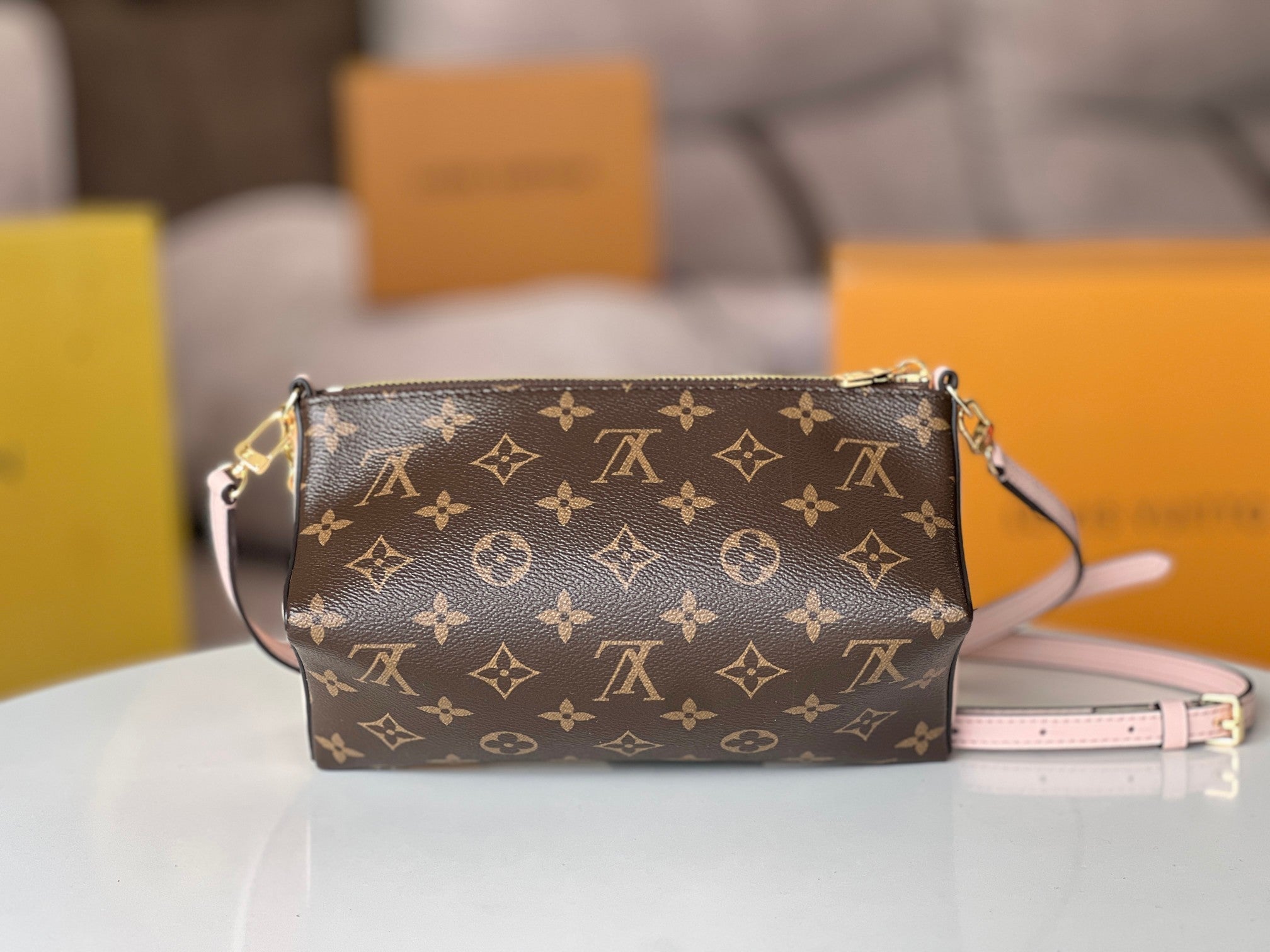 • Material: Monogram canvas and calfskin sides