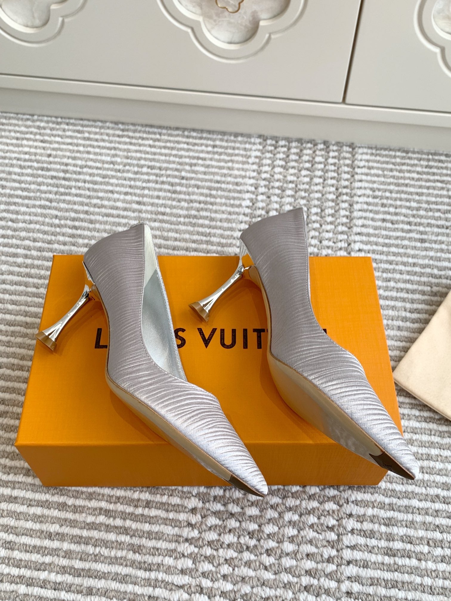 BLOSSOM PUMP 7 CM IN SILVER IMPORTED STRIPED SILK SATIN