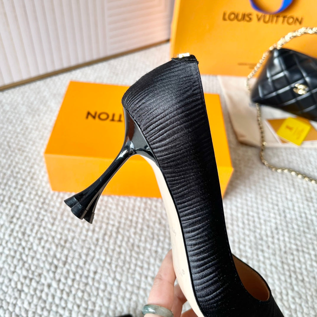 BLOSSOM PUMP 75 MM IN BLACK IMPORTED STRIPED SILK SATIN