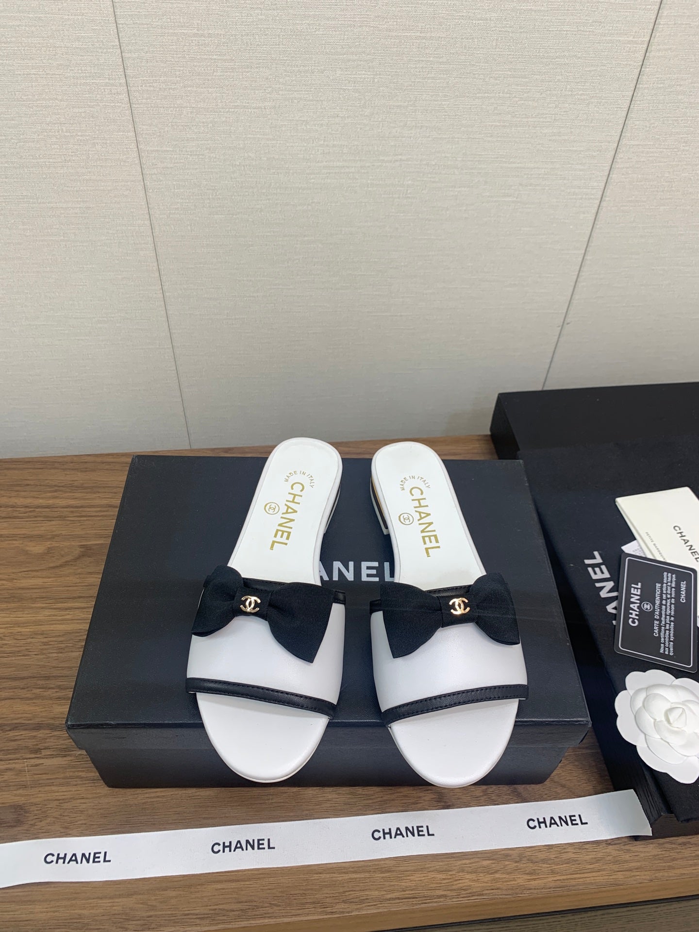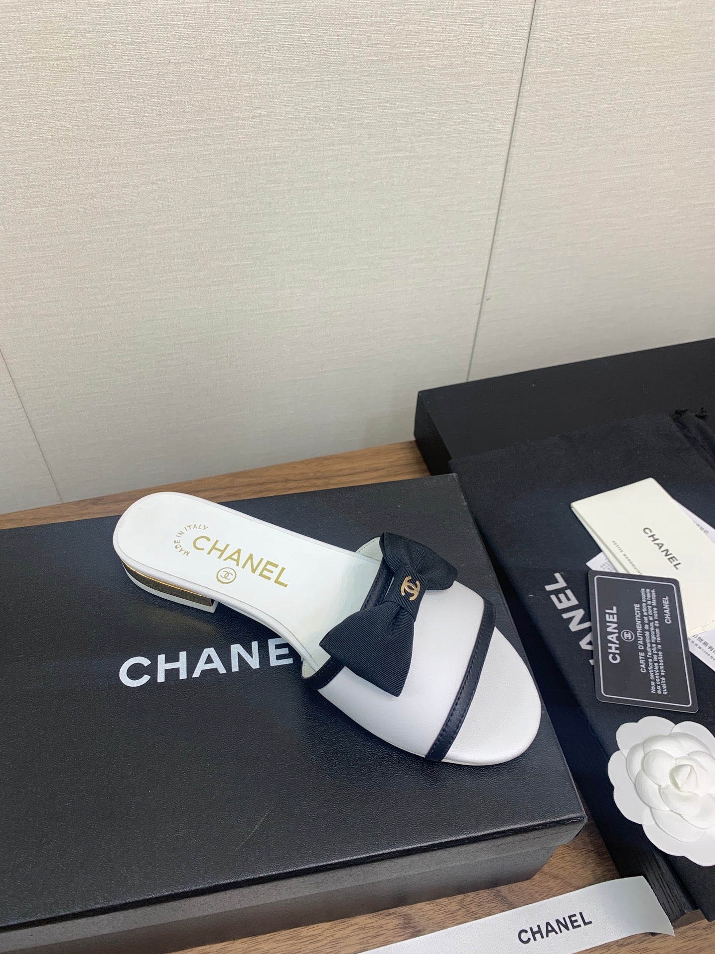 BOW SLIPPERS IN WHITE LAMBSKIN
