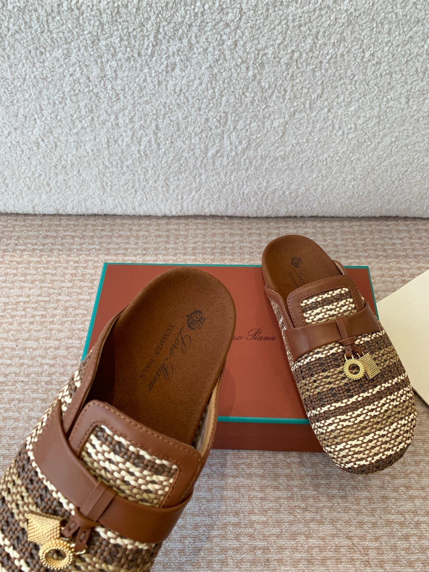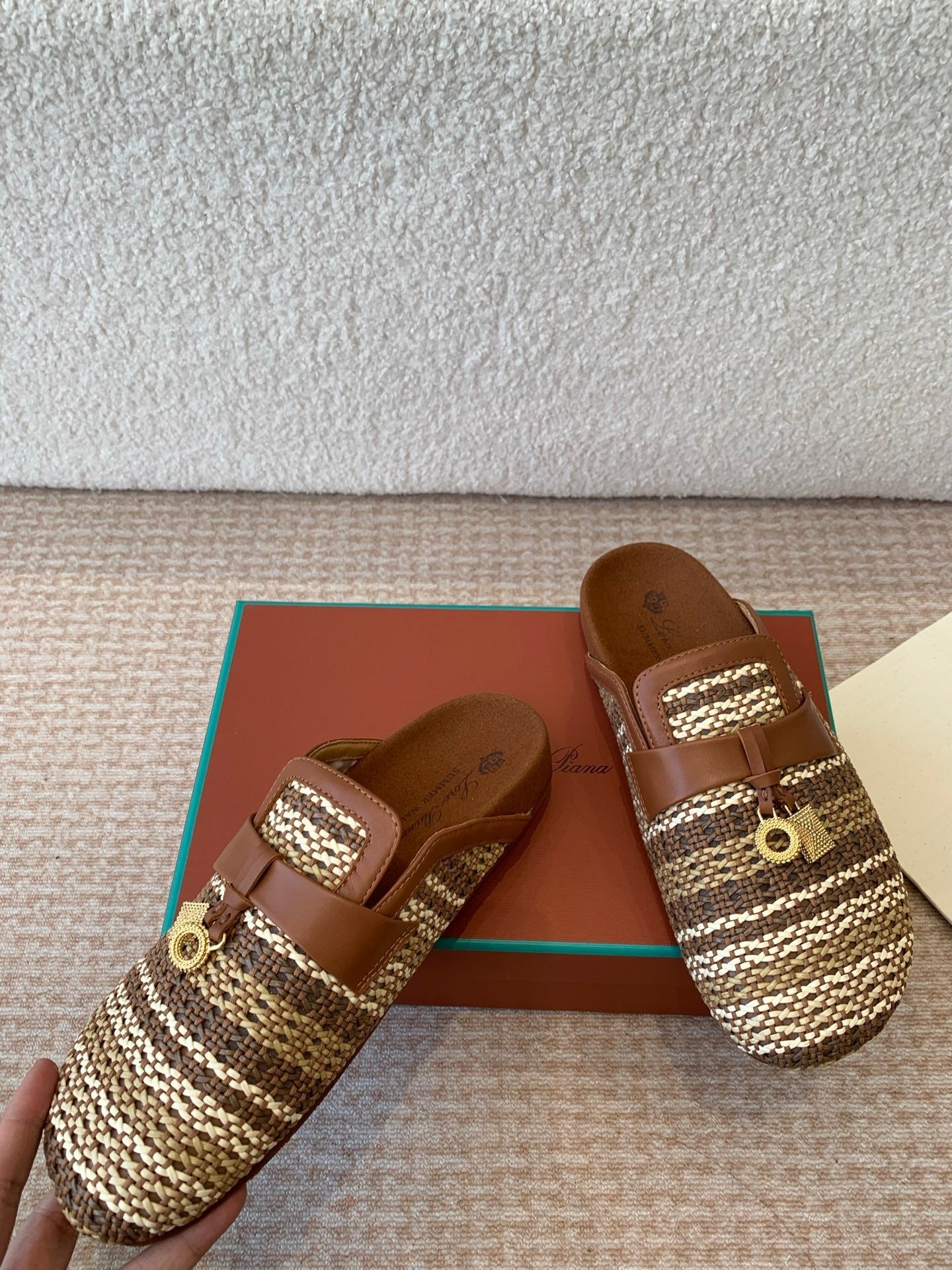 BUBBLE IN MULTICOLOR RAFFIA MIX BROWN LAMBSKIN GOLD HARDWARE