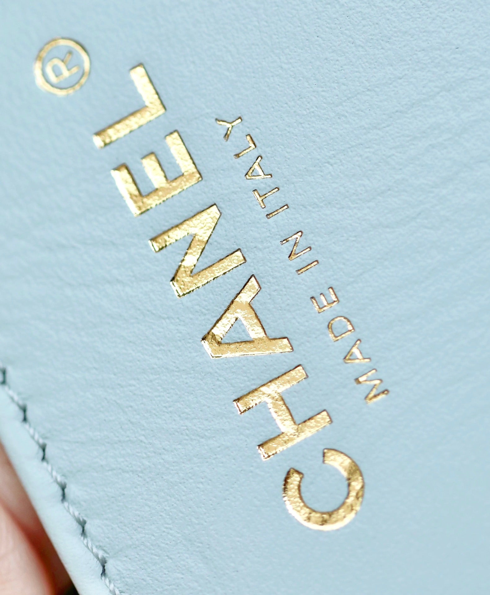 • Color: Lighr Blue, Gold hardware