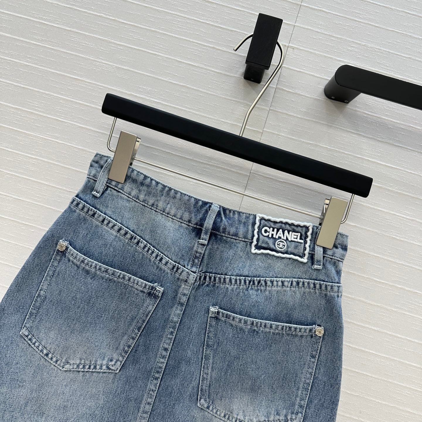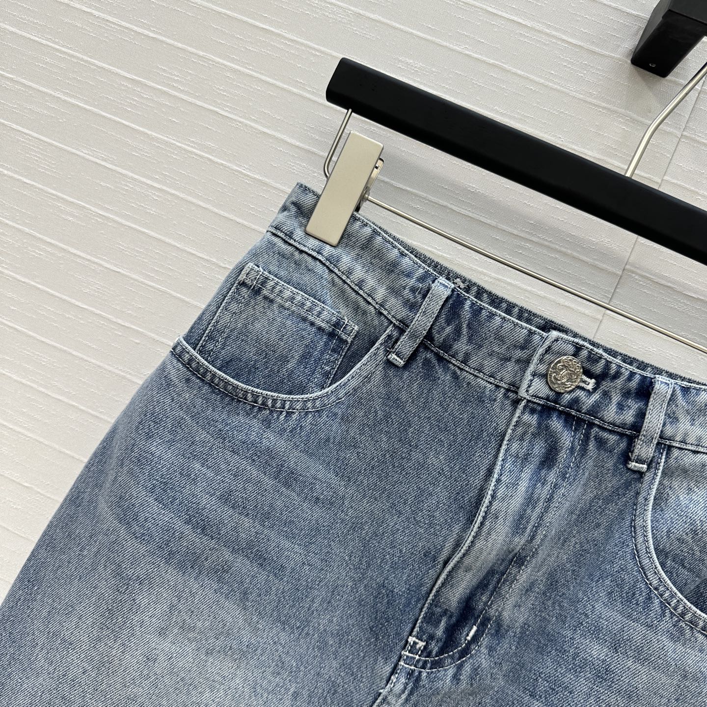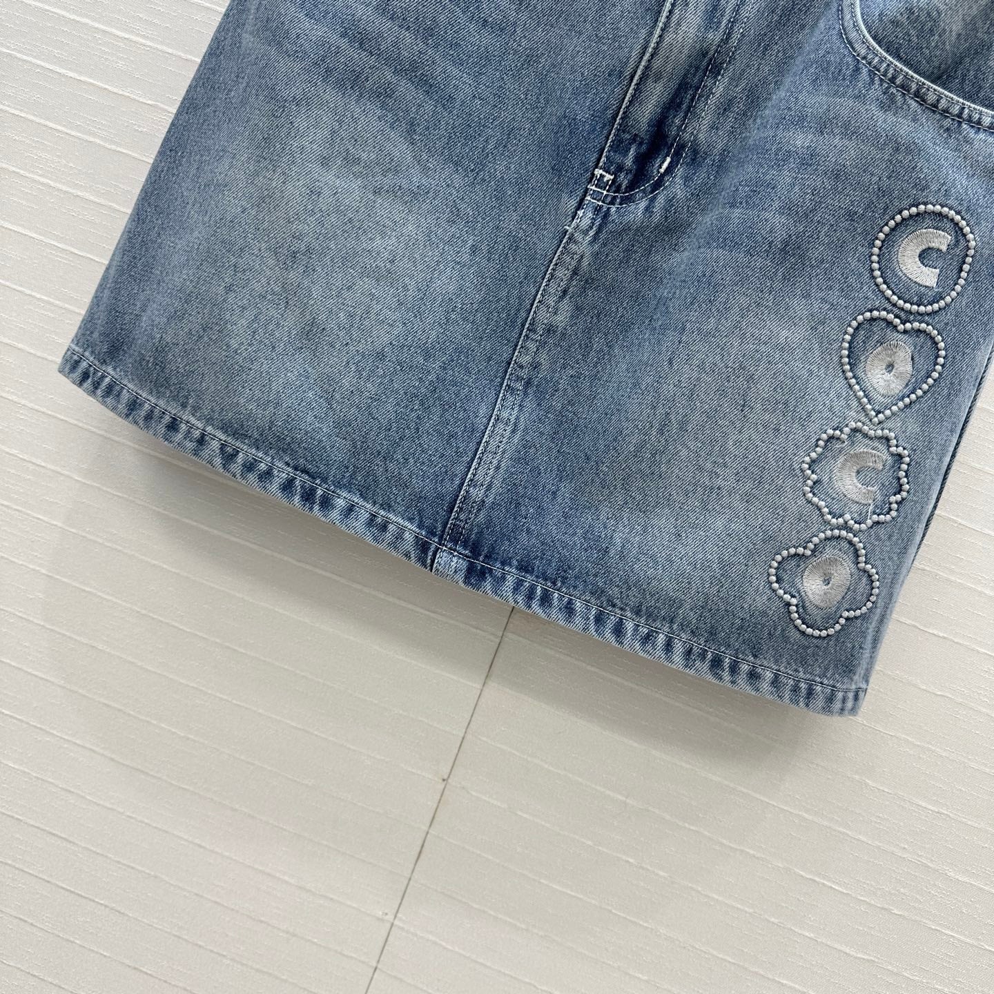CC 25 Embroidered Short Skirt Blue Denim Cotton