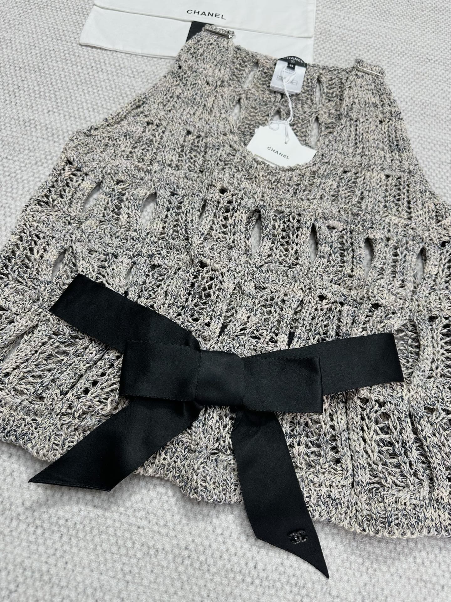 CC 25 Hollow Knitted Vest Gray Cotton