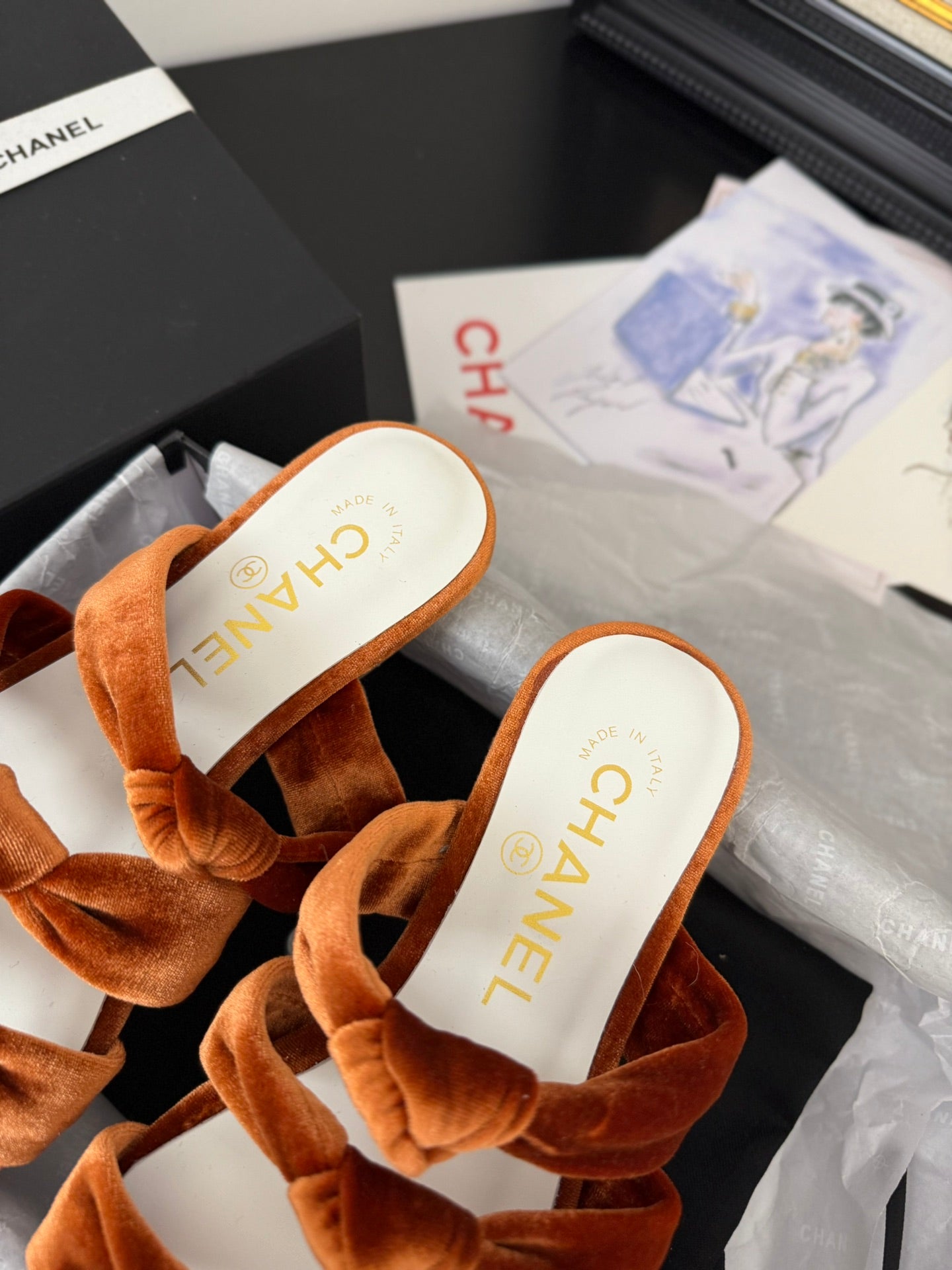 CC 25C Three Strap Mule Pumpkin Velvet fabric 233560