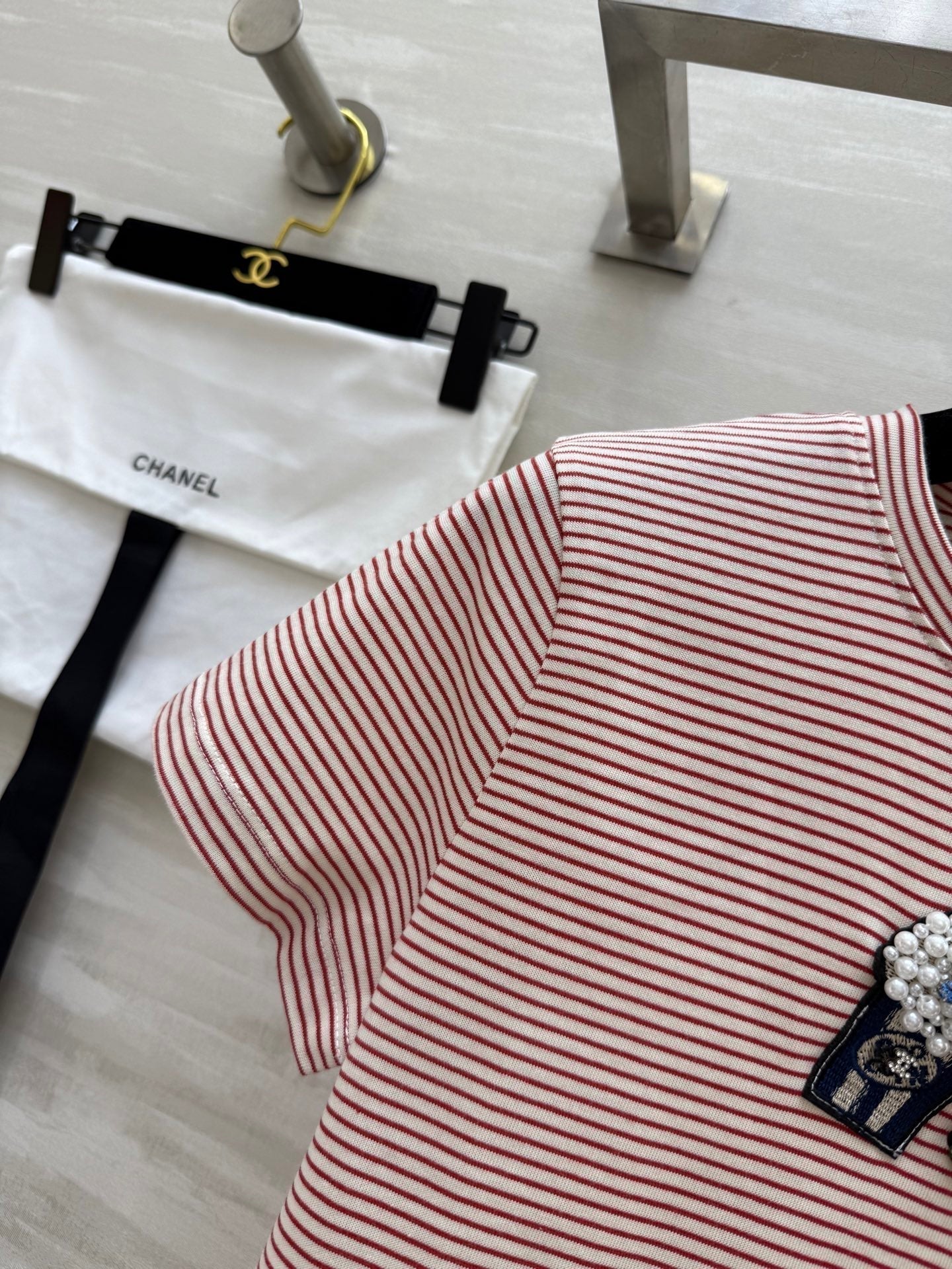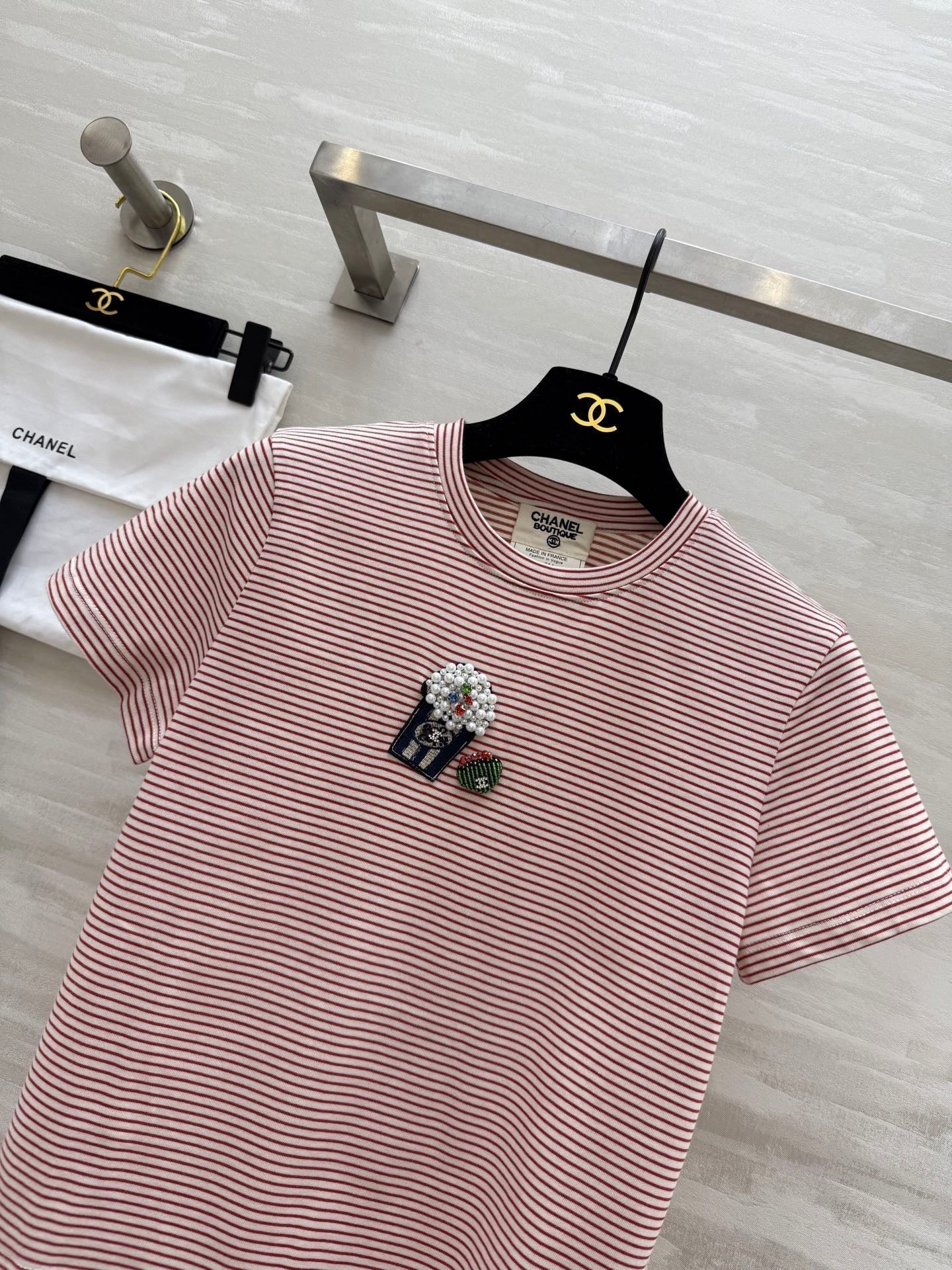 CC Beaded T-shirt Pink White Cotton
