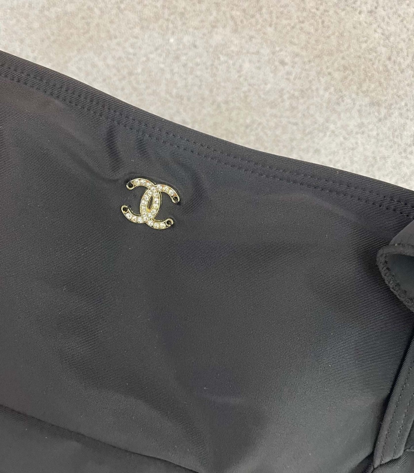 CC BIKINI SWIMSUIT SET IN BLACK ATTACHED WITH GOLD METAL LOGO 615196