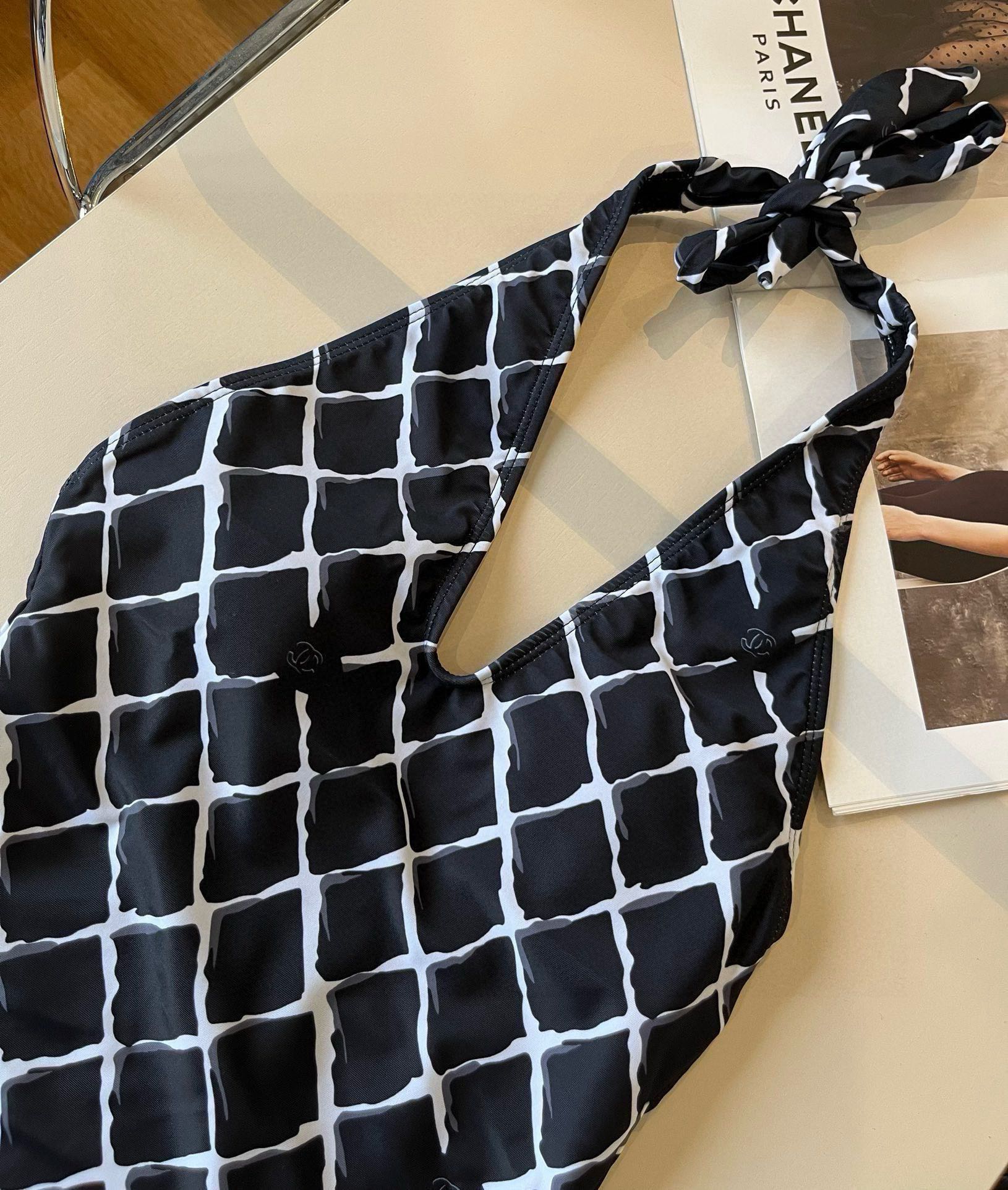 CC BIKINI SWIMSUIT SET IN WHITE CHECKERED PRINT ON BLACK BACKGROUND 624545