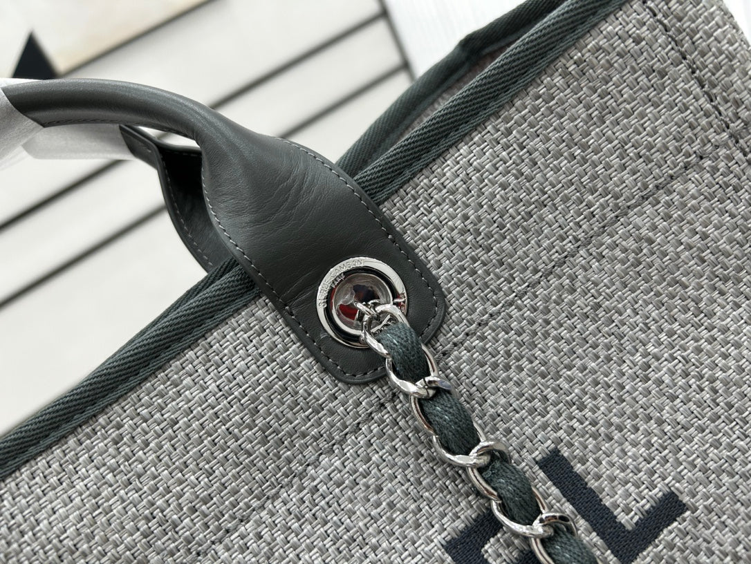 CC DEAUVILLE LARGE 38 TOTE BAG IN GREY CANVAS WITH BLACK LOGO