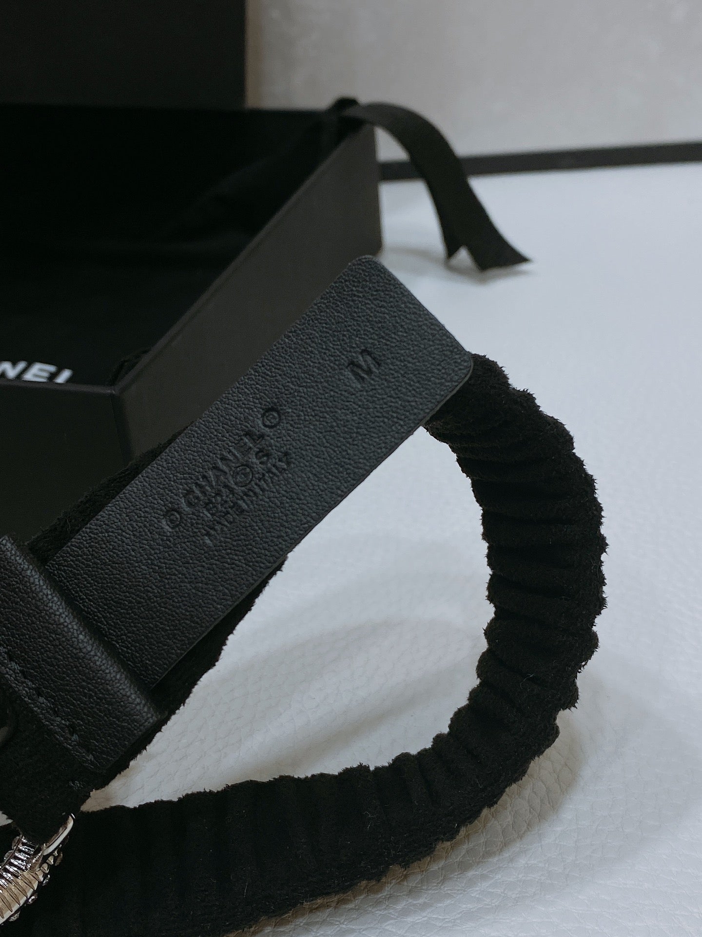 CC ELASTIC BELT 30MM IN BLACK WOOL FABRIC SILVER HARDWARE WITH RHINSTONES
