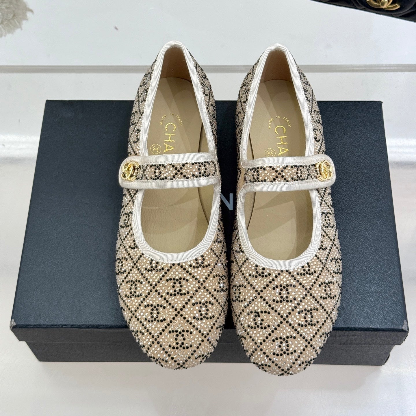 CC FLAT MARY JANE 25SS IN BEIGE EMBELLISHED WITH RHINESTONES