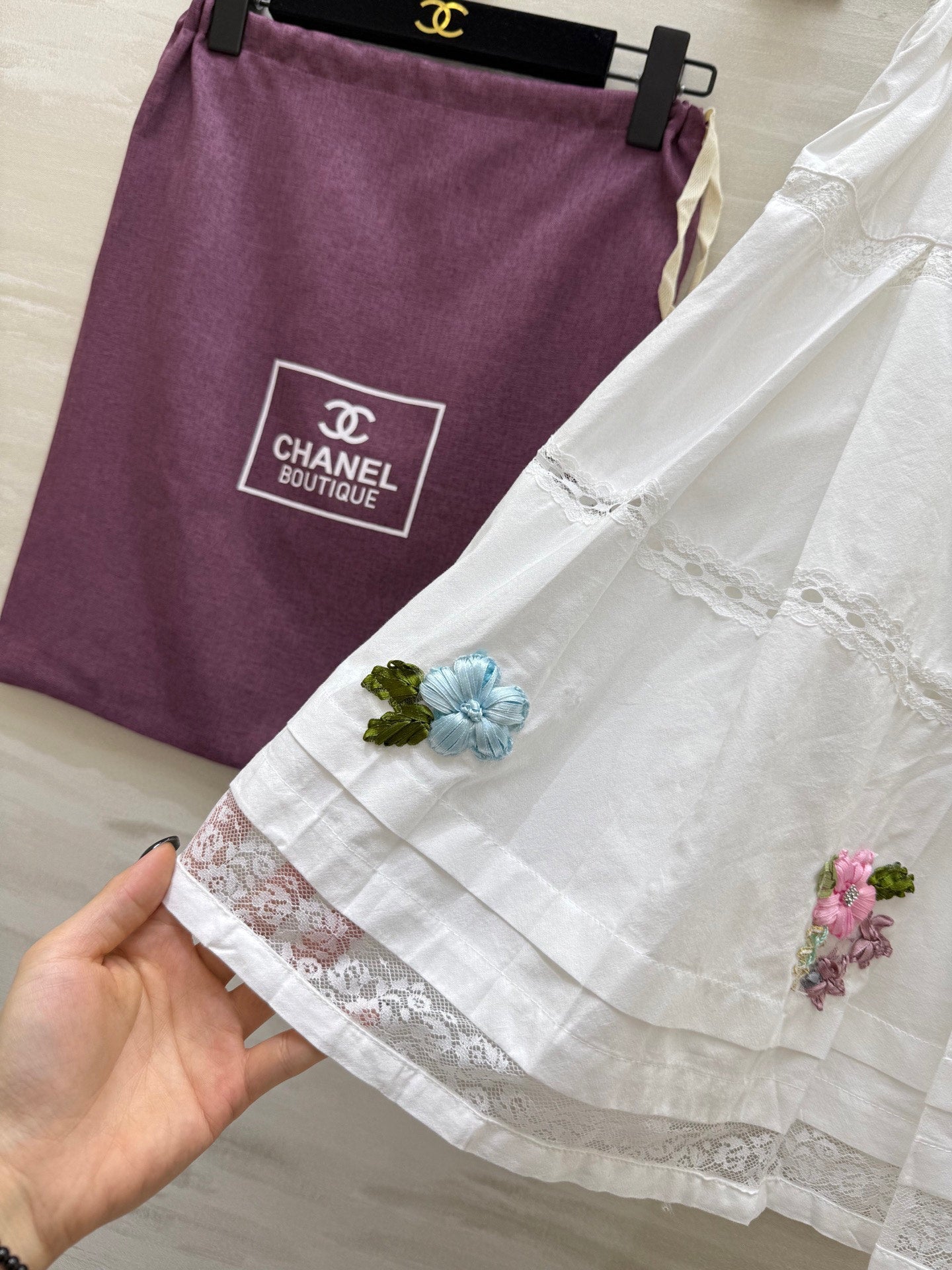 CC Floral Lace Patchwork Shirt White Cotton
