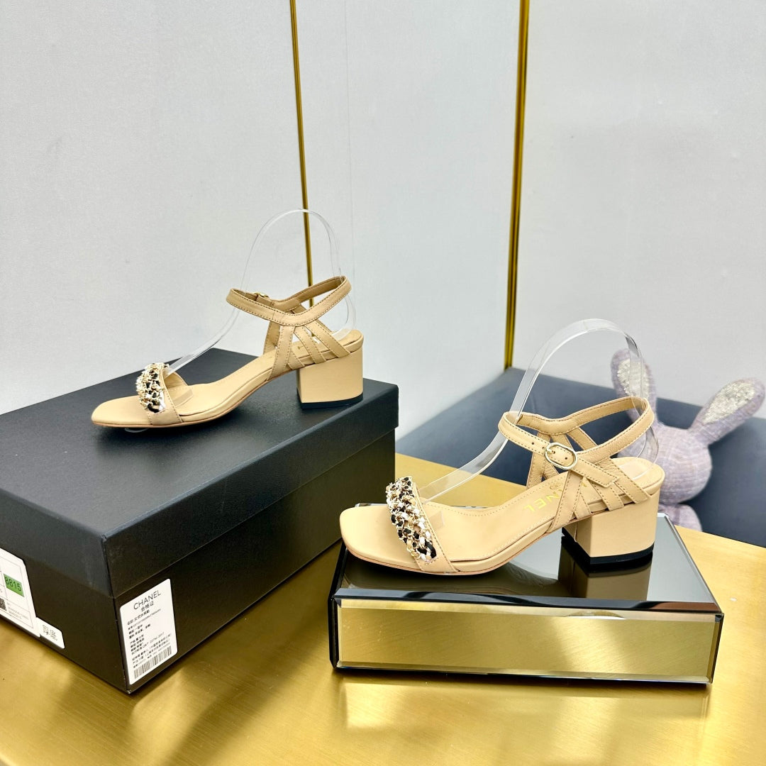 CC HIGH SANDAL 25S IN BEIGE CALFSKIN