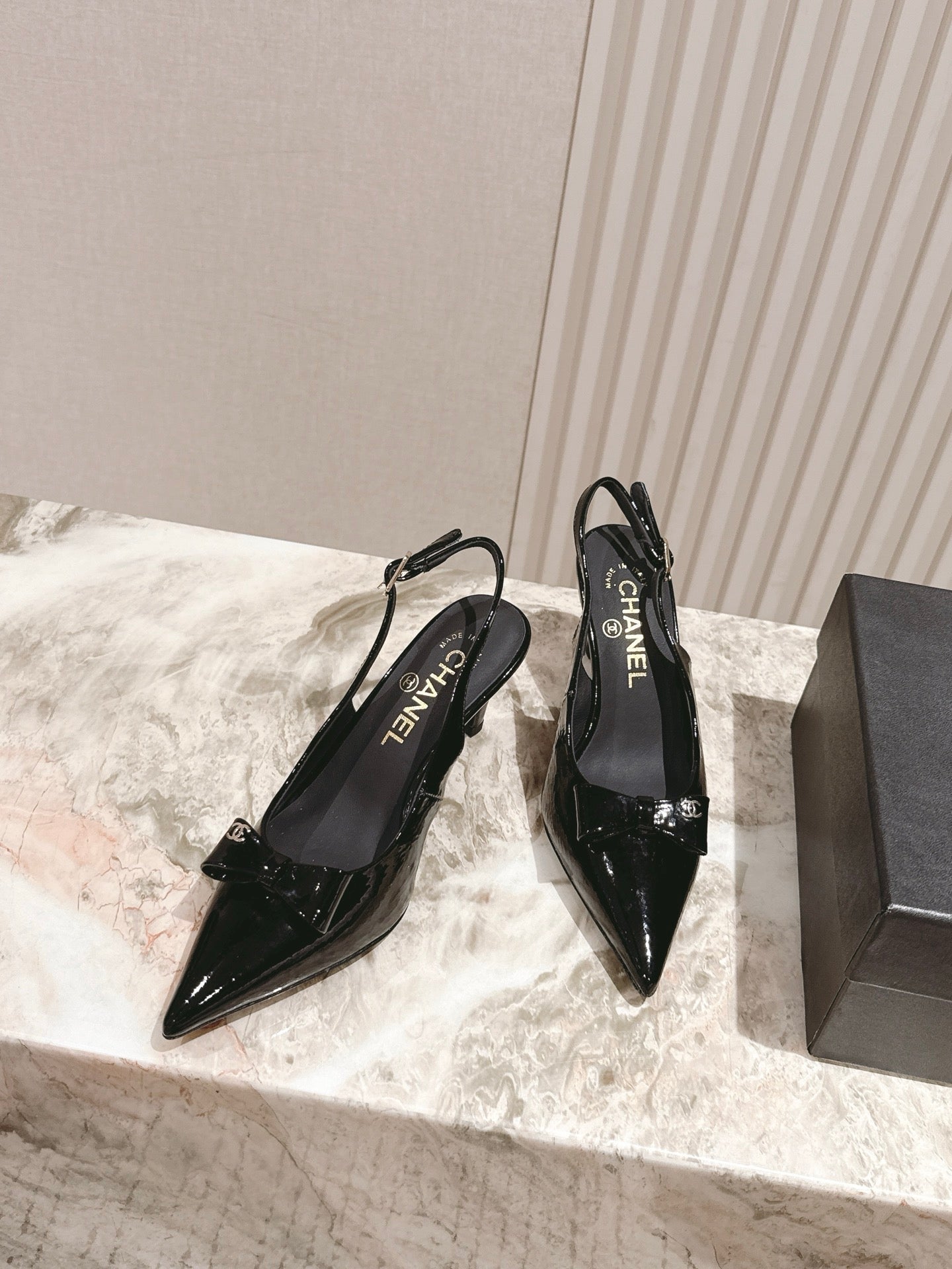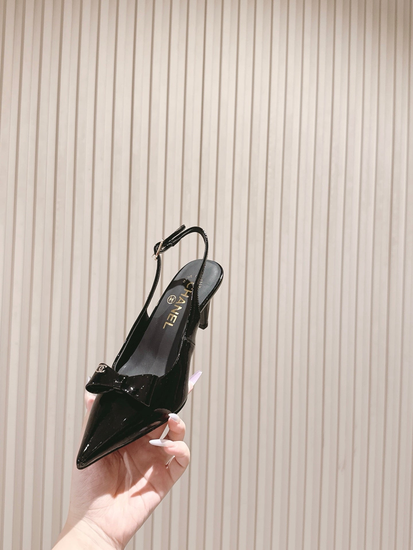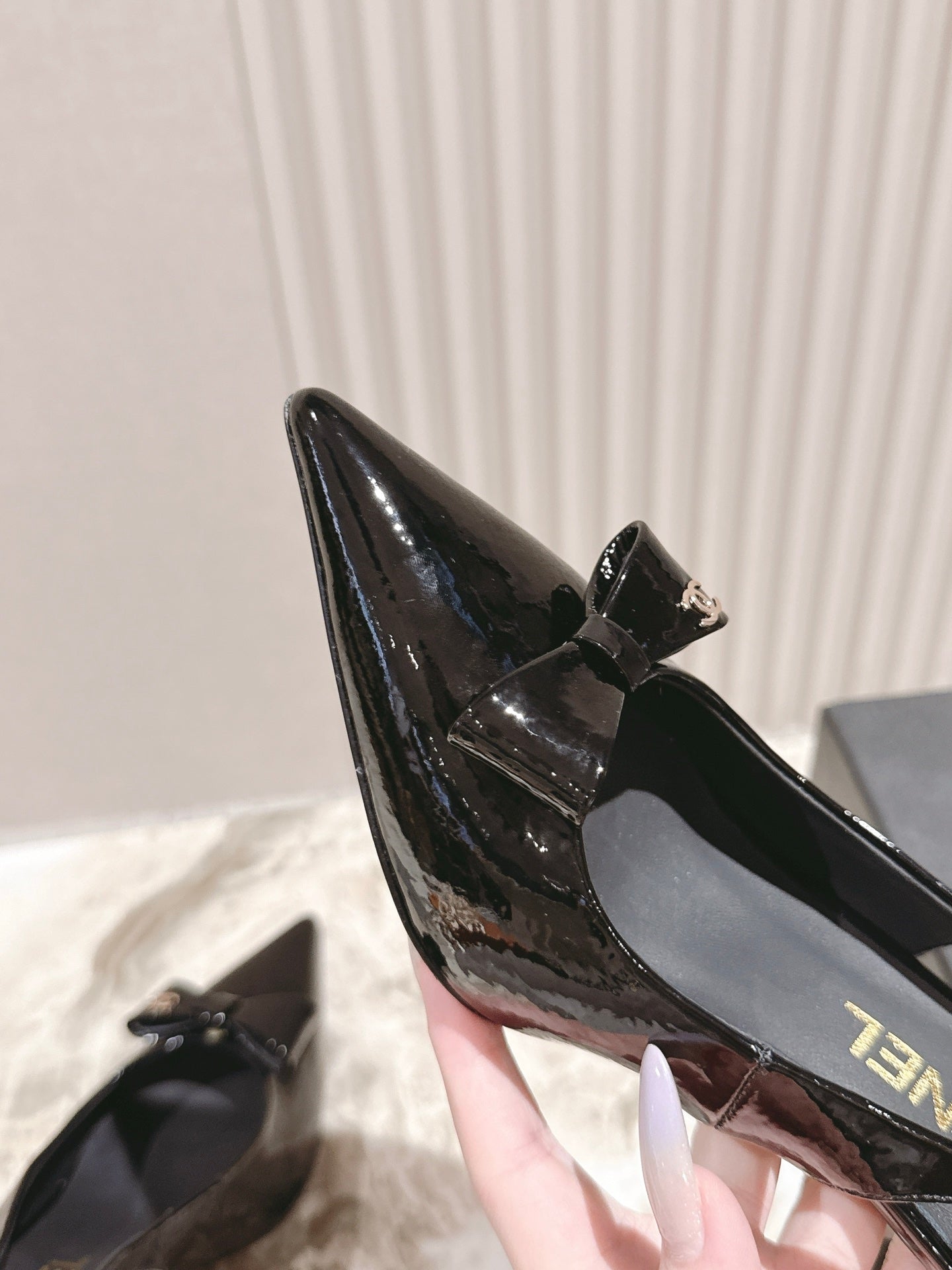 CC HIGH SLINGBACK IN BLACK LAMBSKIN WITH BOW ATTACHED