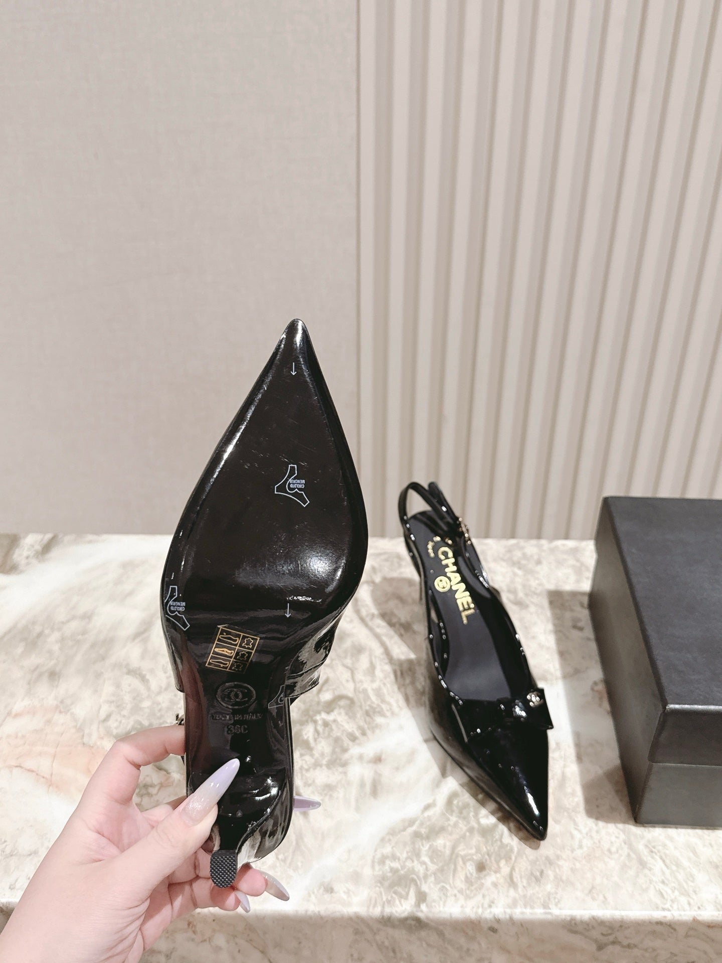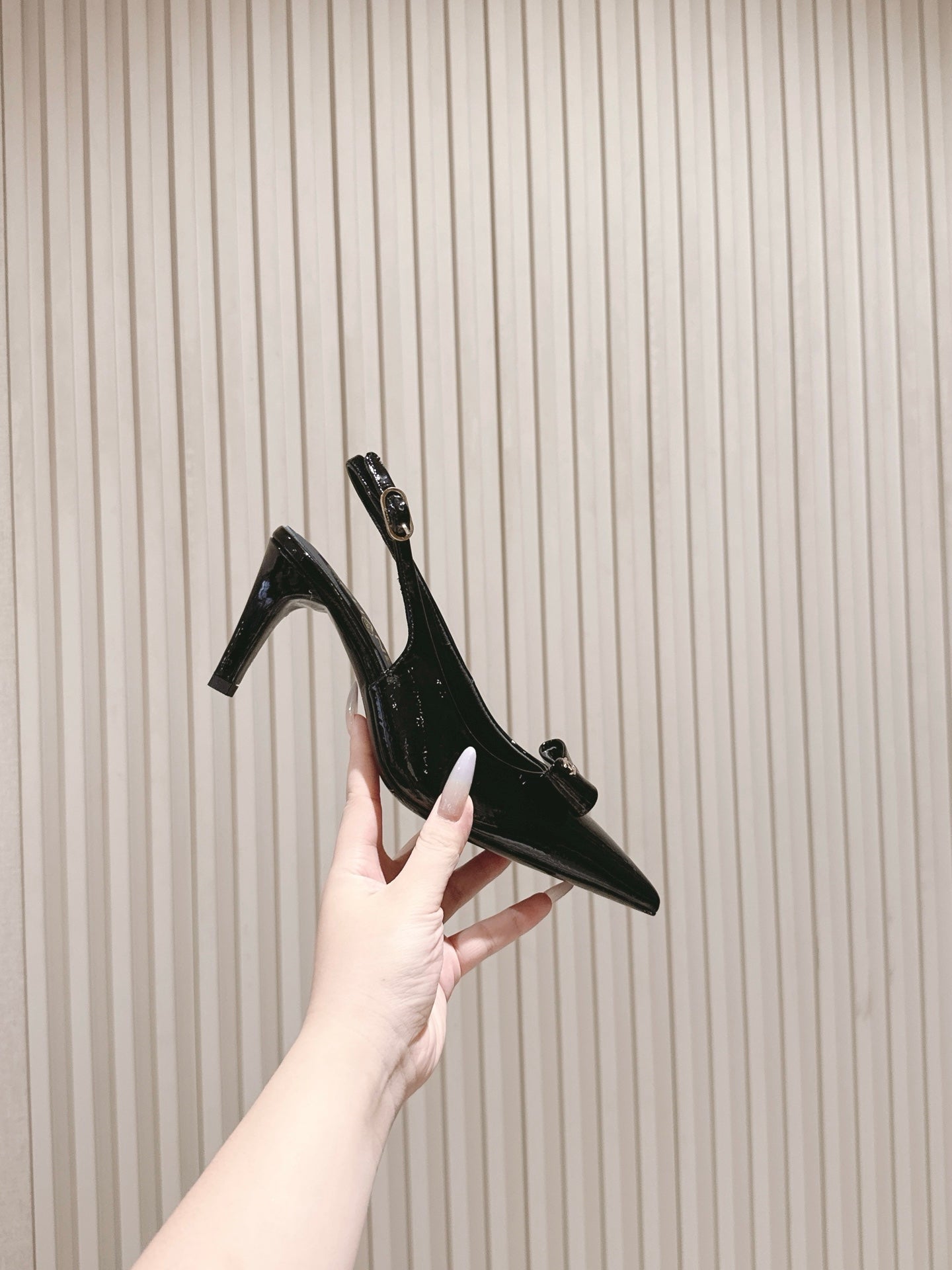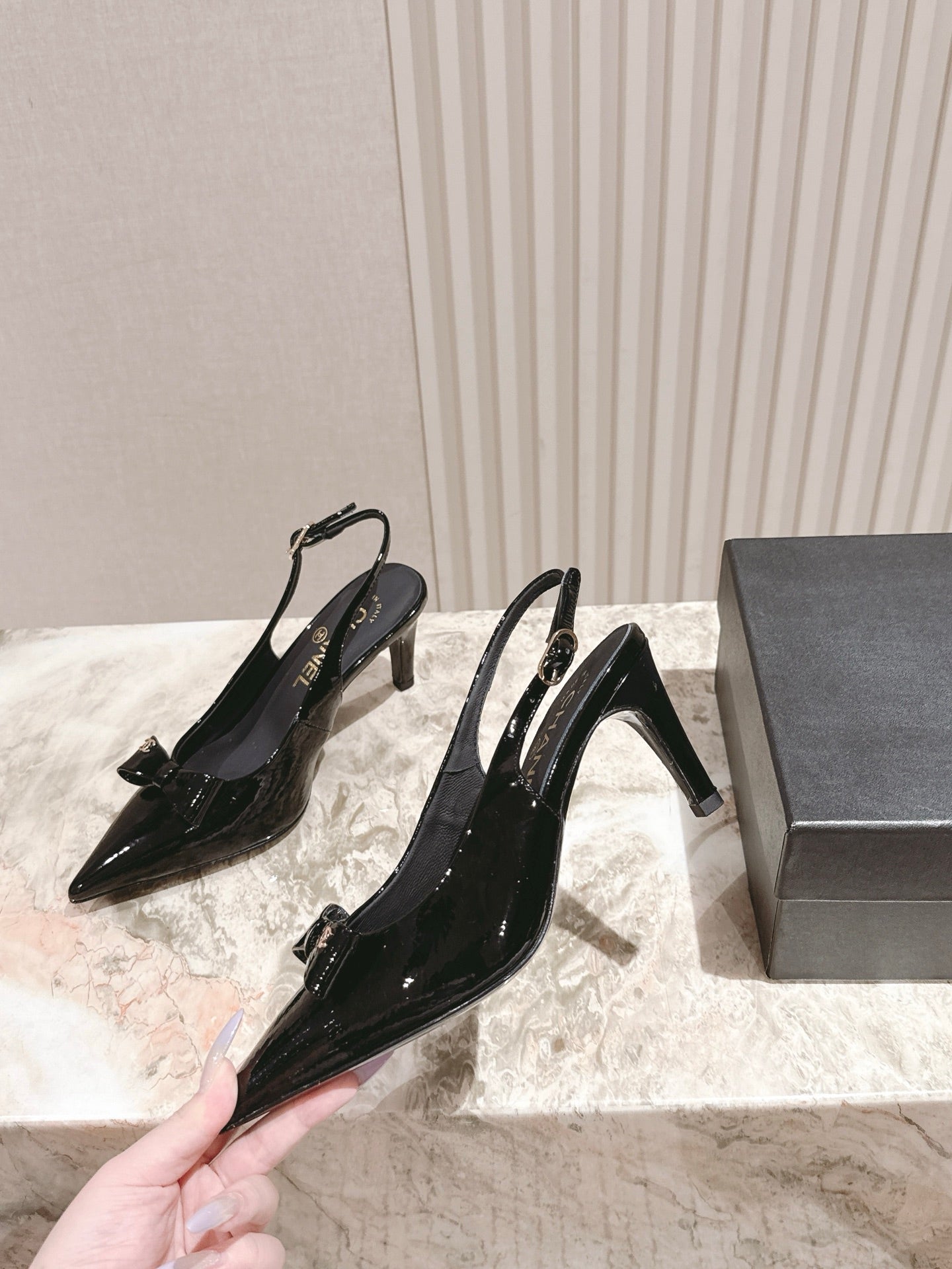 CC HIGH SLINGBACK IN BLACK LAMBSKIN WITH BOW ATTACHED
