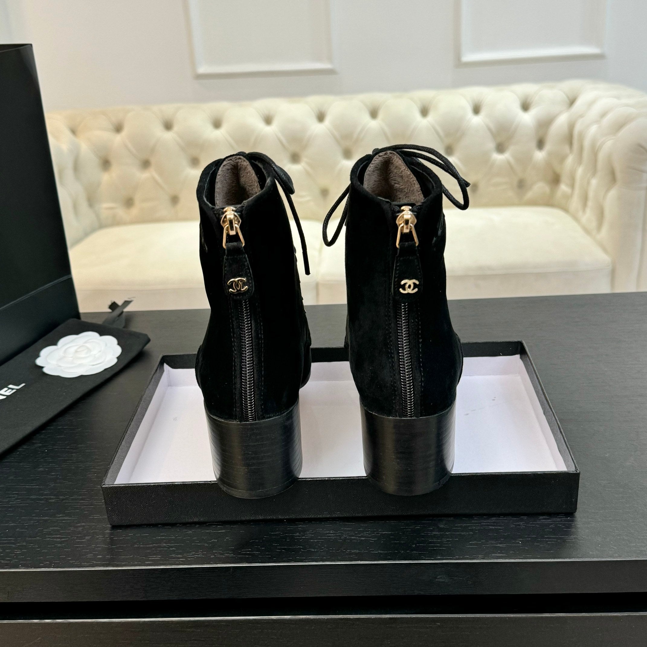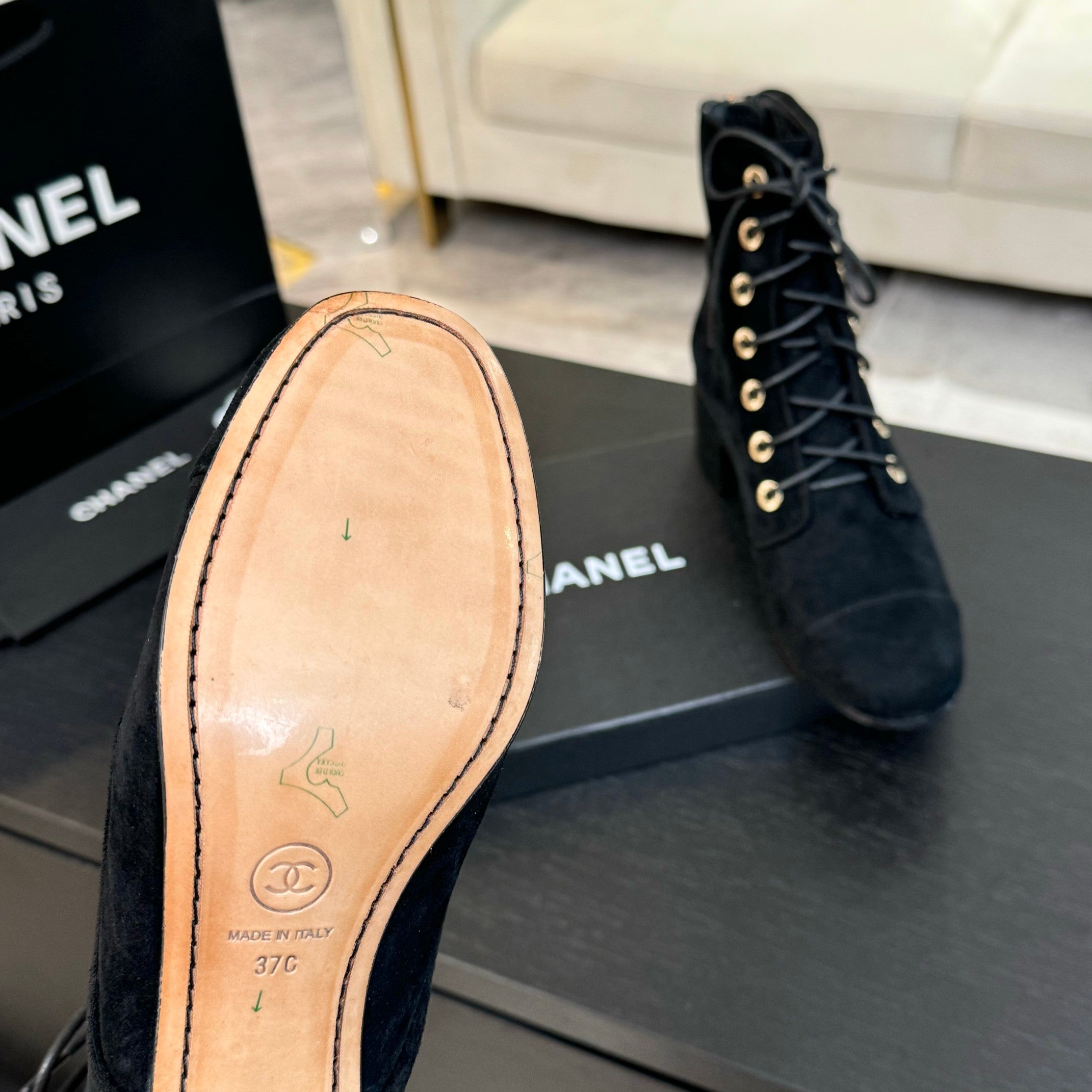 CC LACE-UP SHORT BOOTS IN BLACK SUEDE