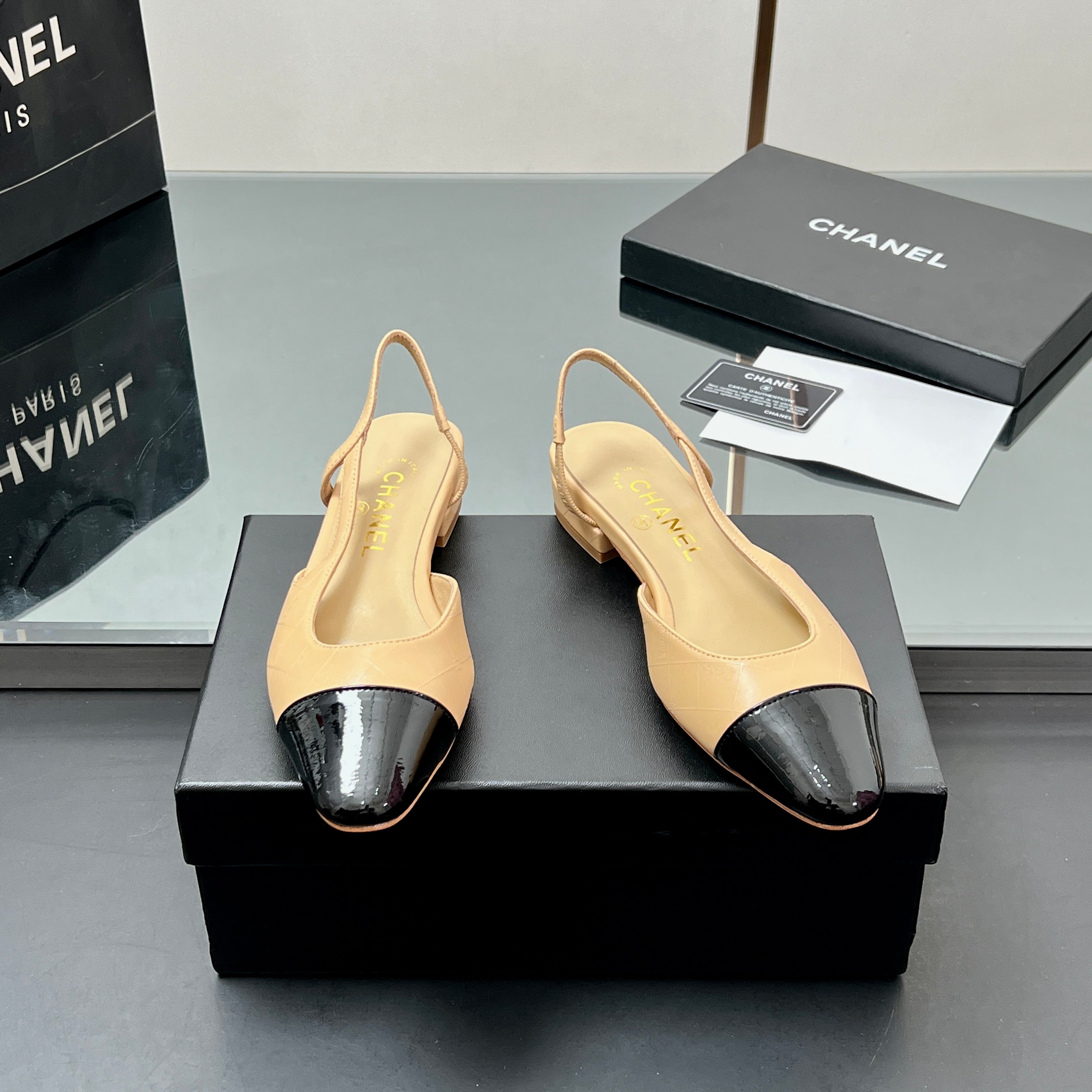 CC SLINGBACK 25S 25 MM IN BEIGE LAMBSKIN AND BLACK GLOSSY LEATHER WITH CHECK PATTERN
