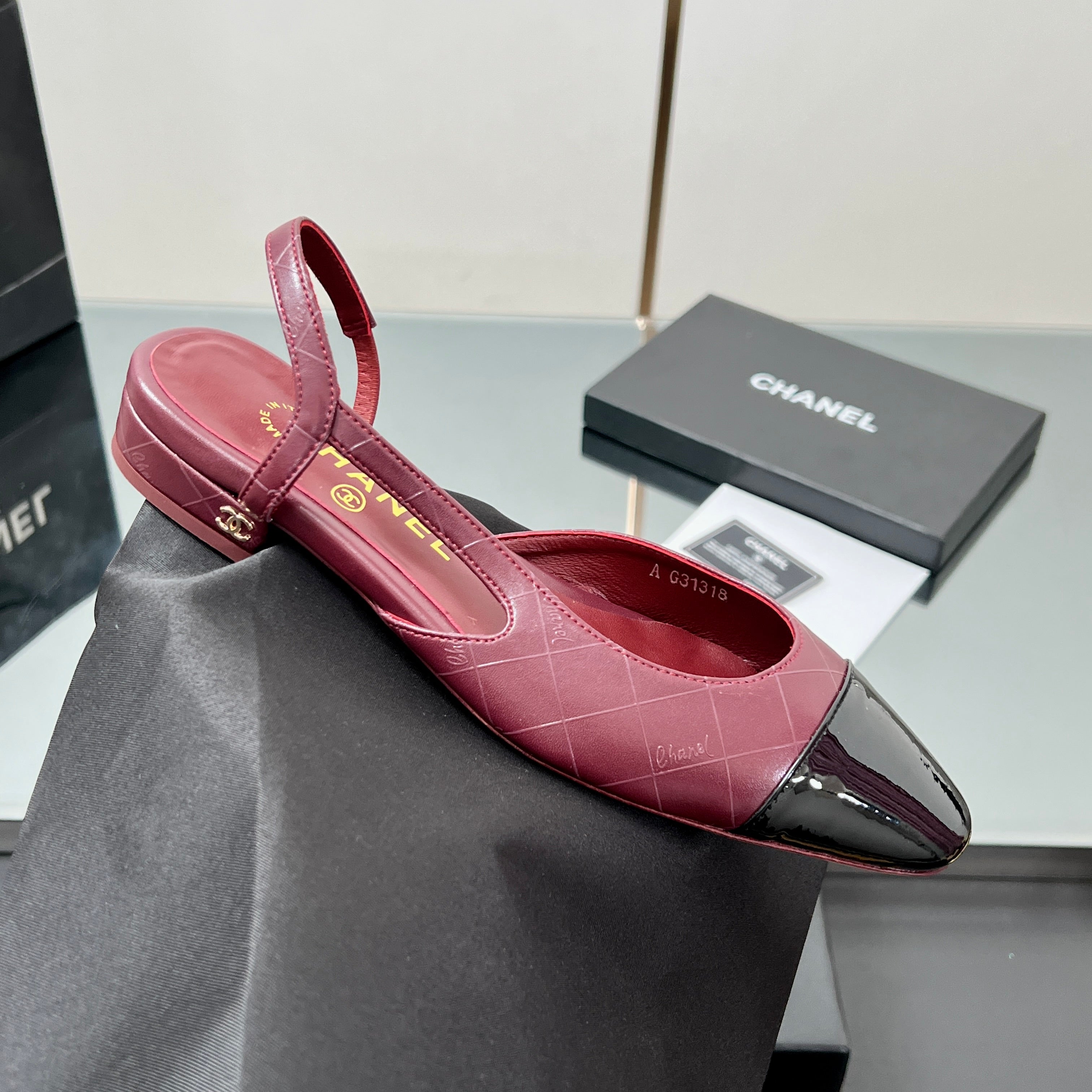 CC SLINGBACK 25S 25 MM IN BURGUNDY LAMBSKIN AND BLACK GLOSSY LEATHER WITH CHECK PATTERN