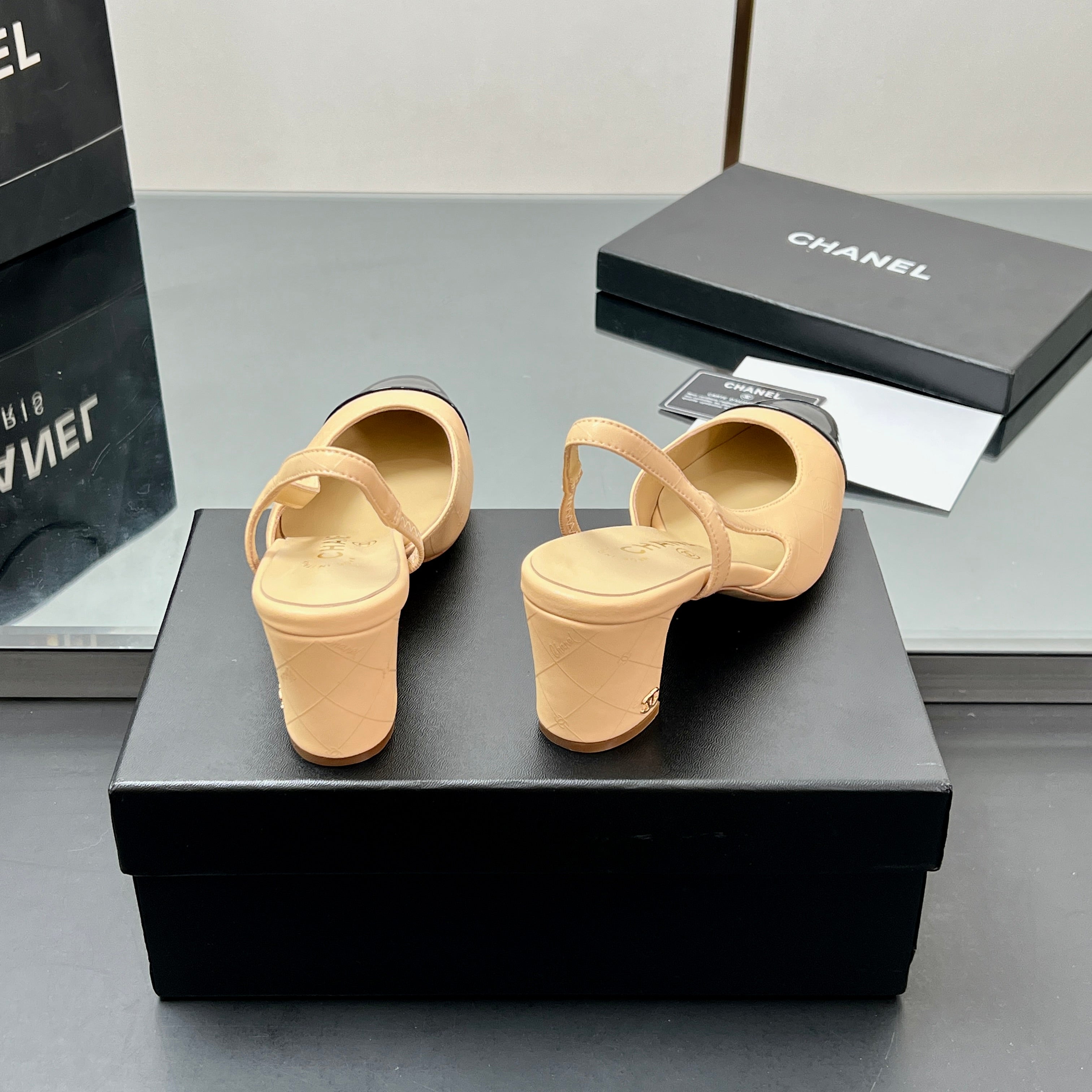 CC SLINGBACK 25S 65 MM IN BEIGE LAMBSKIN AND BLACK GLOSSY LEATHER WITH CHECK PATTERN