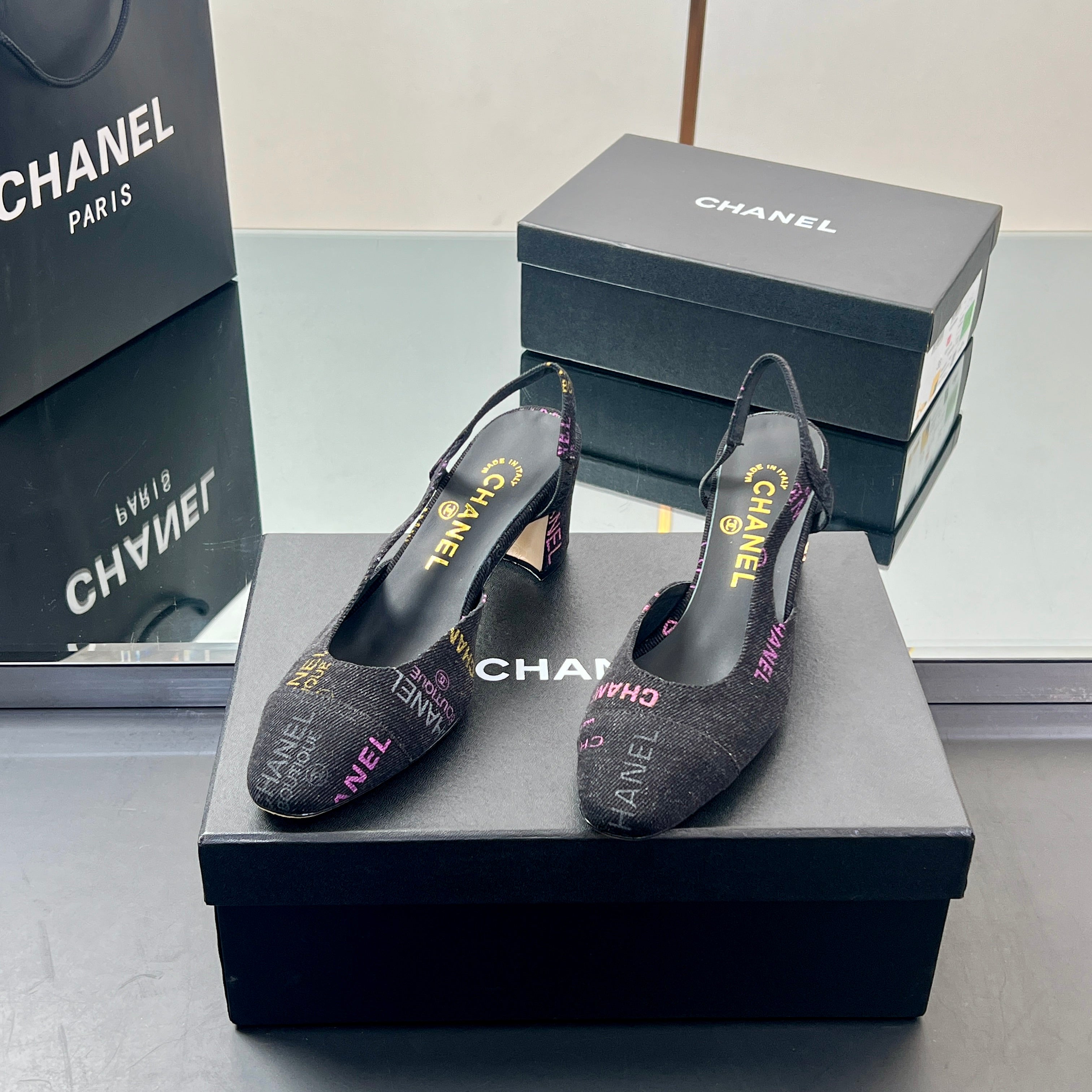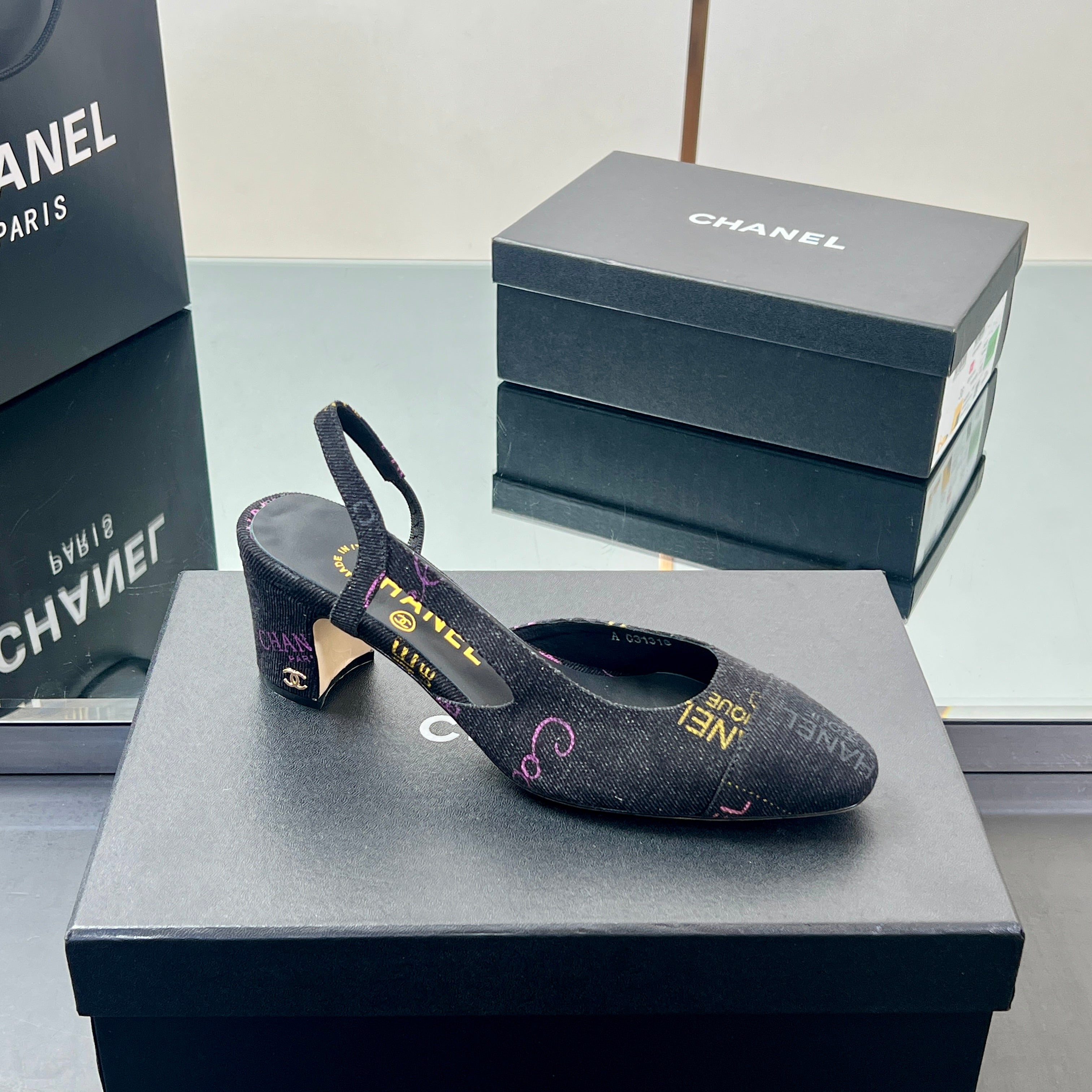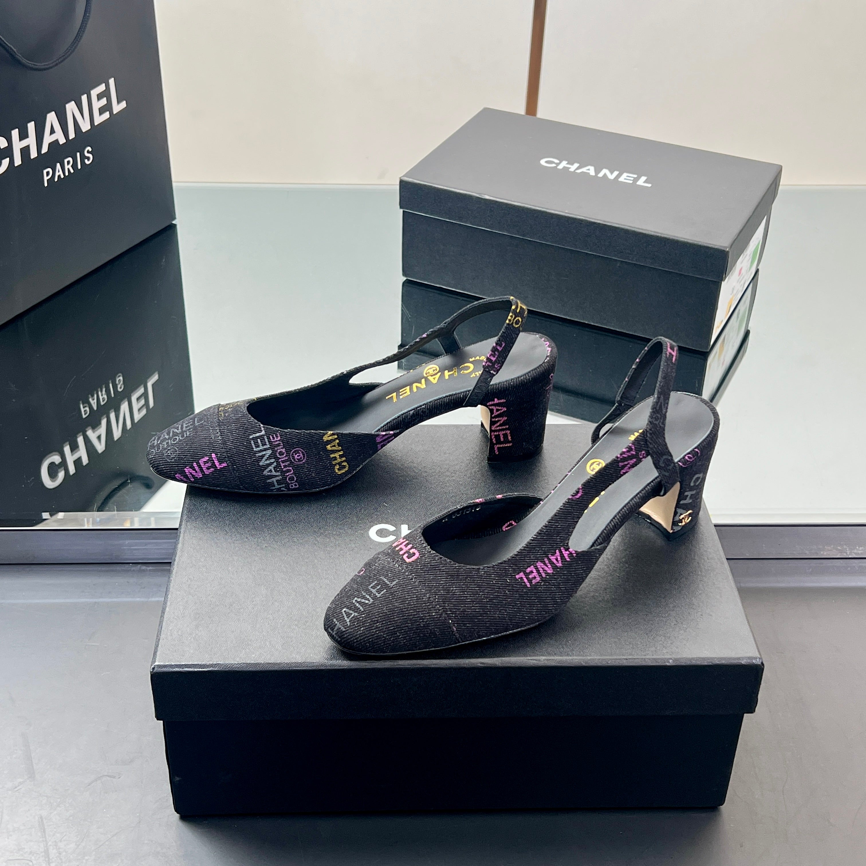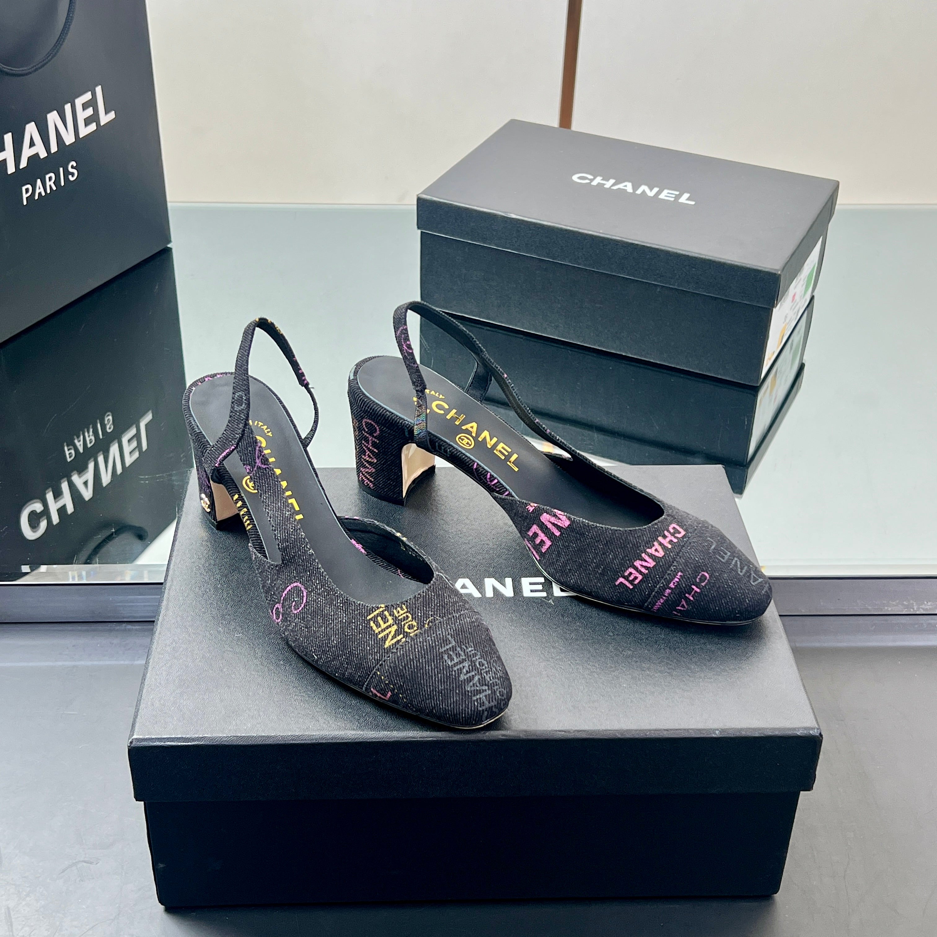 CC SLINGBACK 25S 65 MM IN BLACK FABRIC PRINT BRAND LOGO