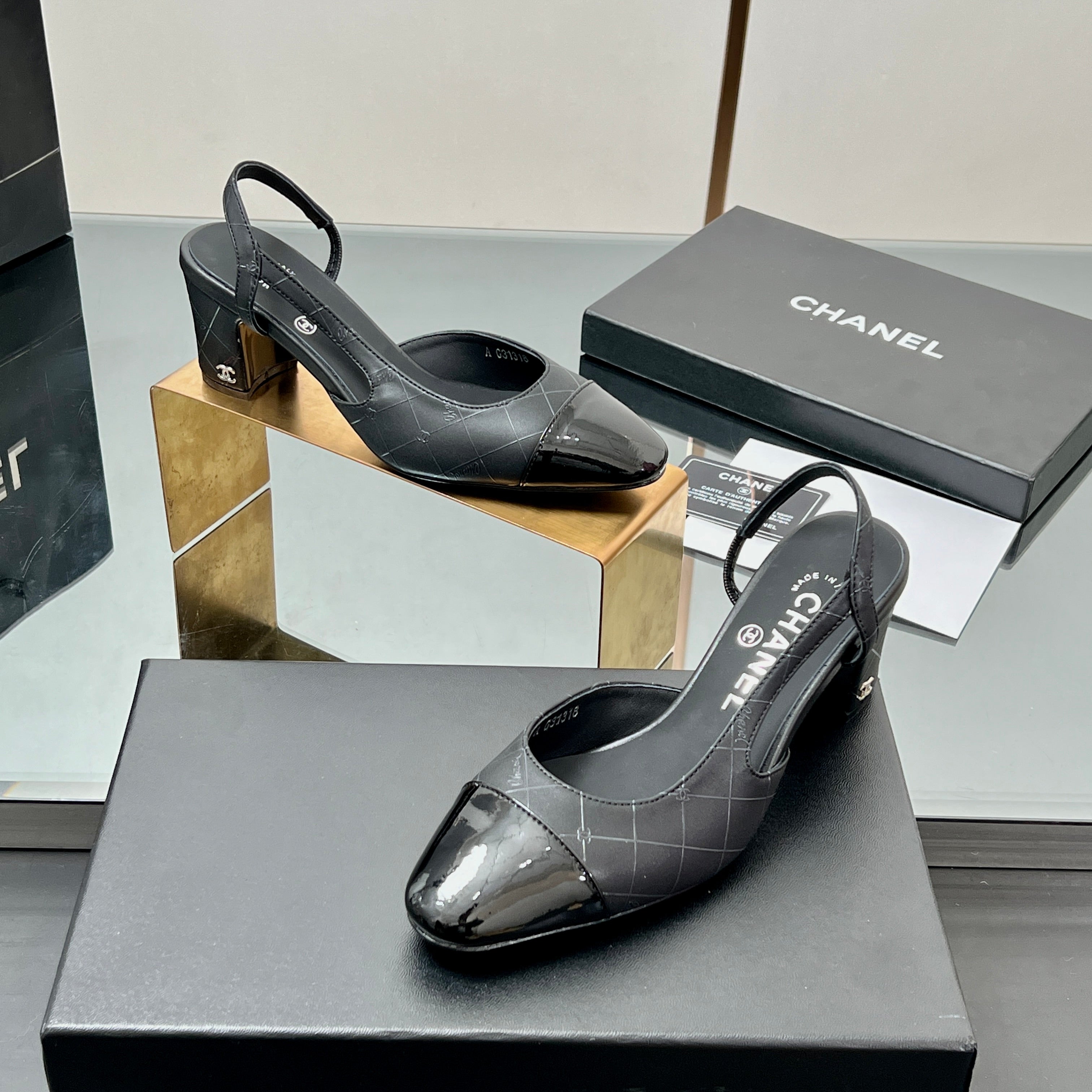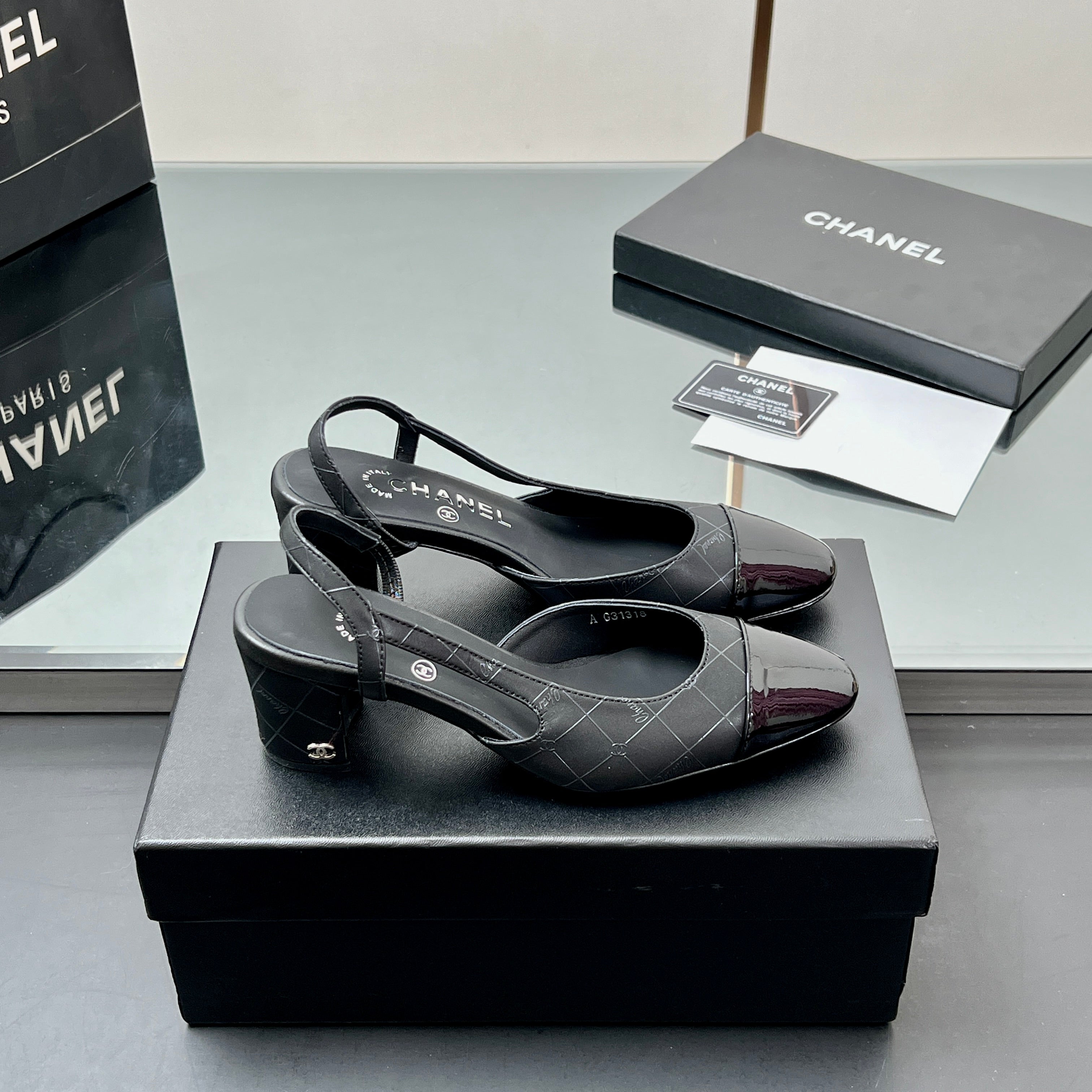 CC SLINGBACK 25S 65 MM IN BLACK LAMBSKIN WITH CHECK PATTERN