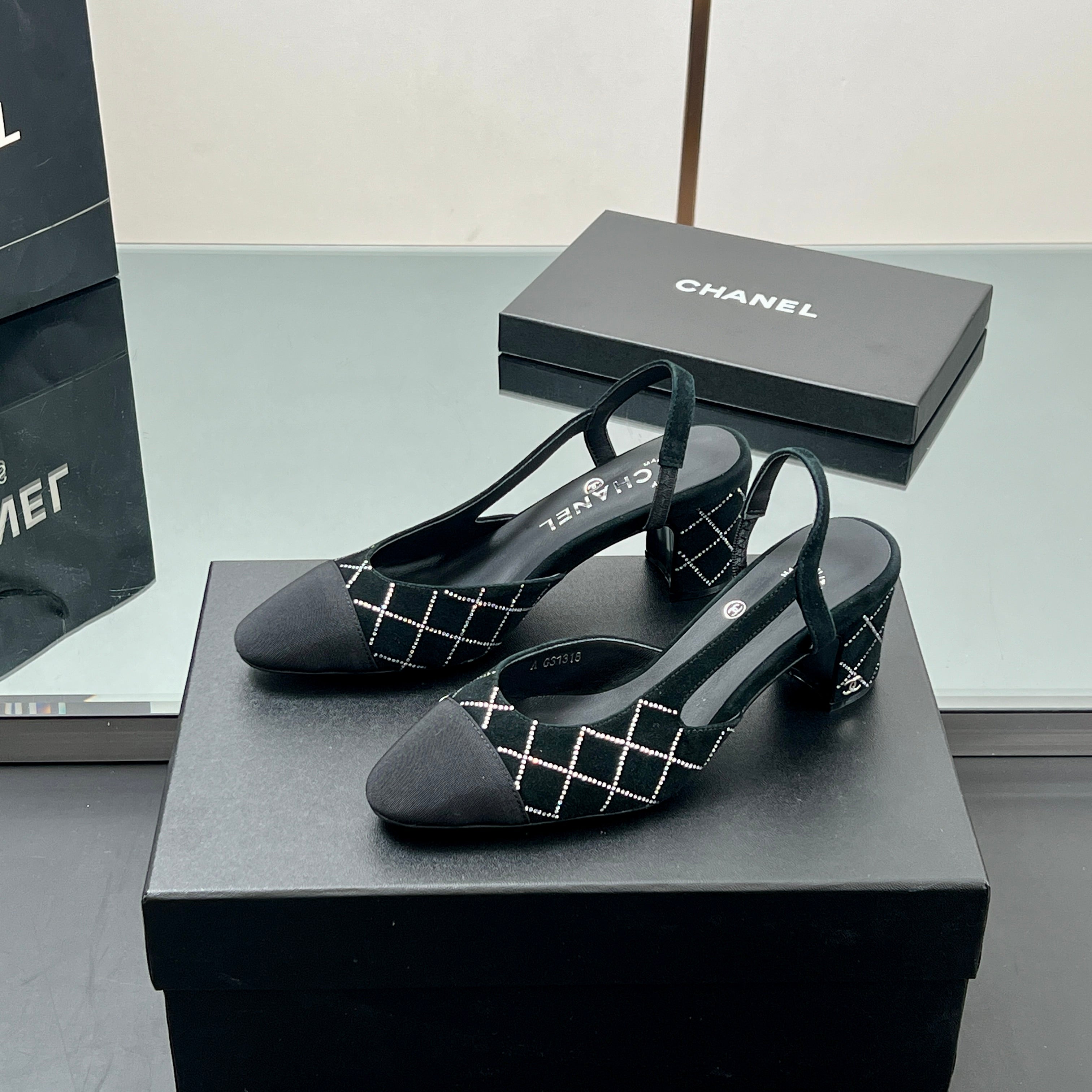 CC SLINGBACK 25S 65 MM IN BLACK SUEDE AND CRYSTALS