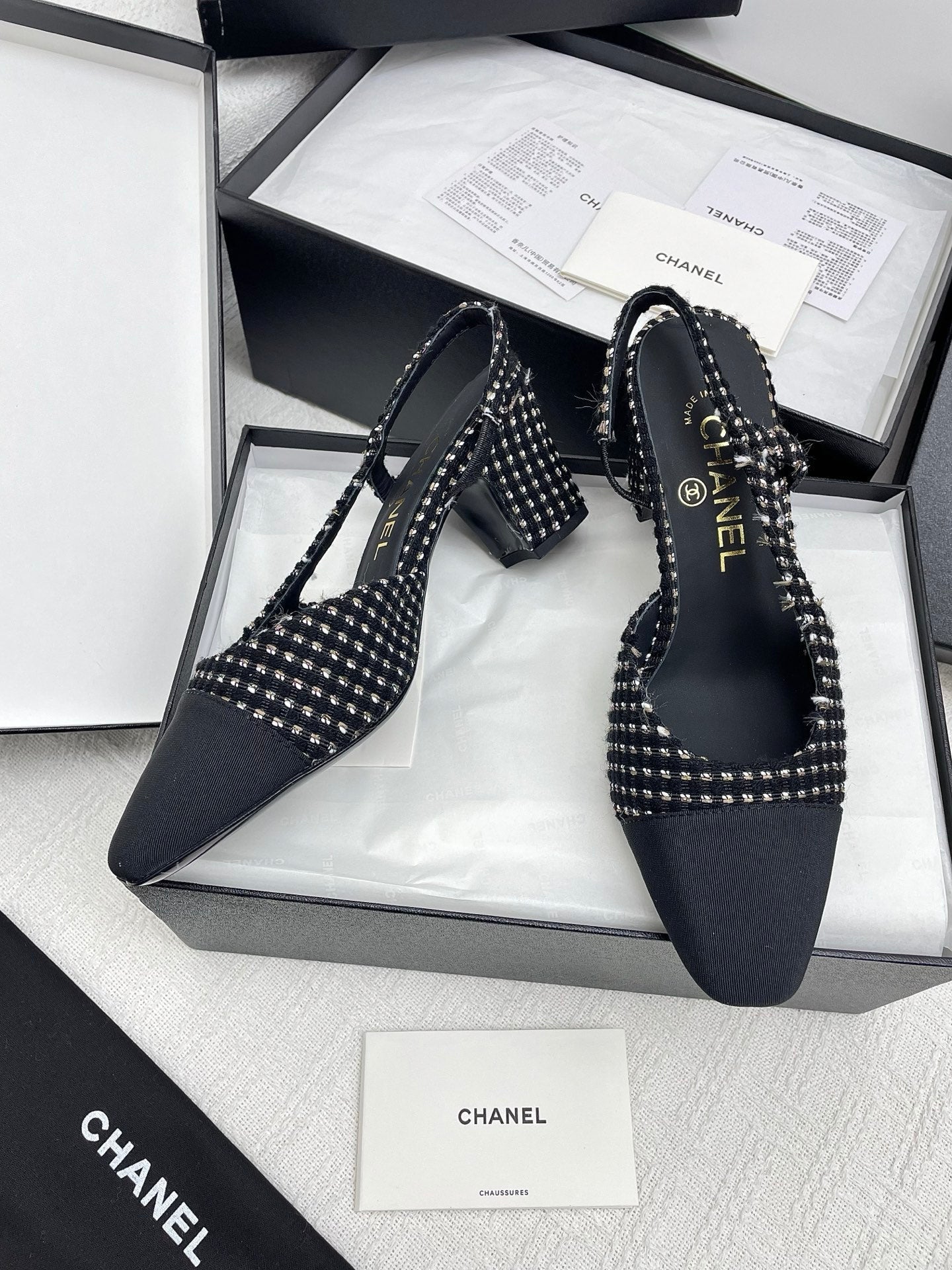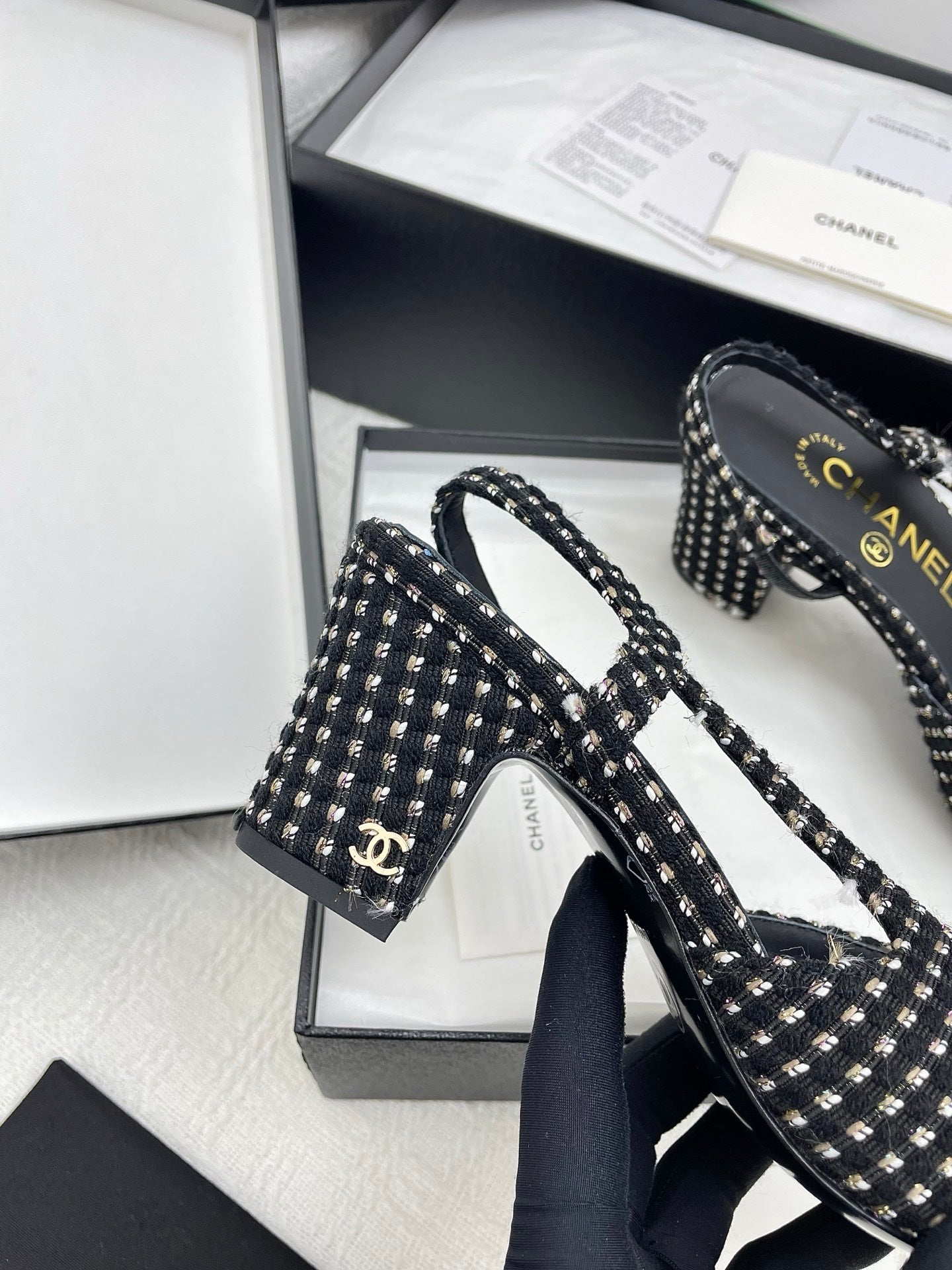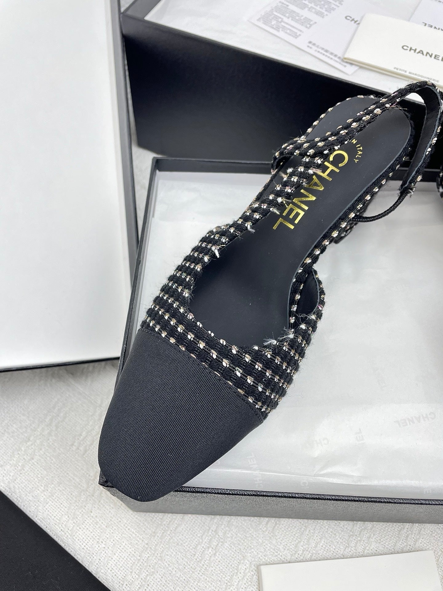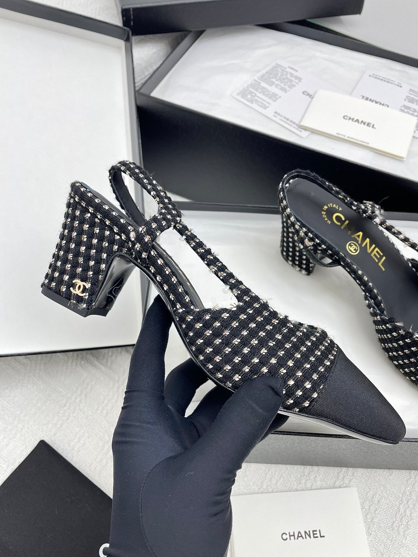 CC SLINGBACK 25S 65 MM IN BLACK TWEED AND FABRIC