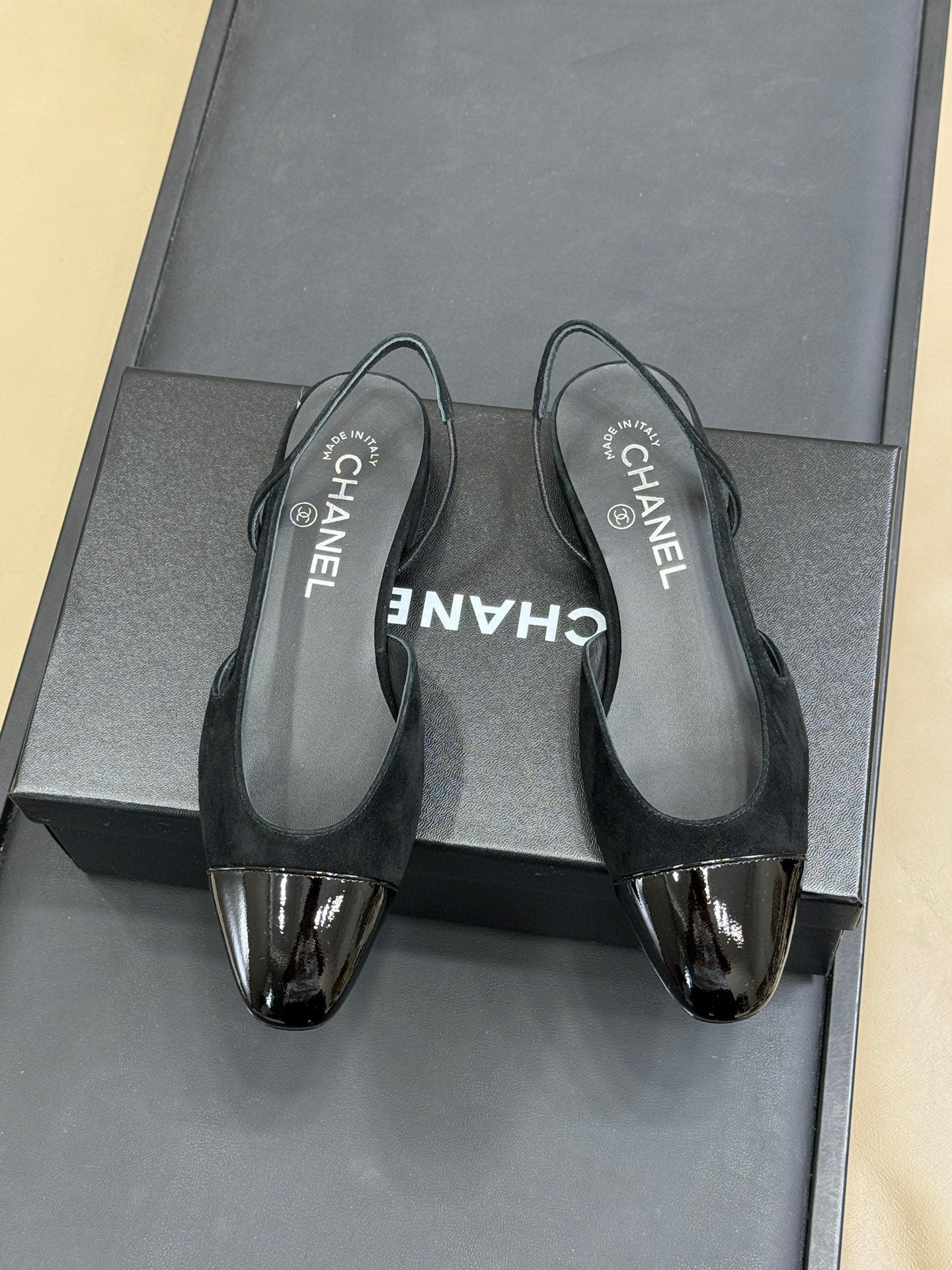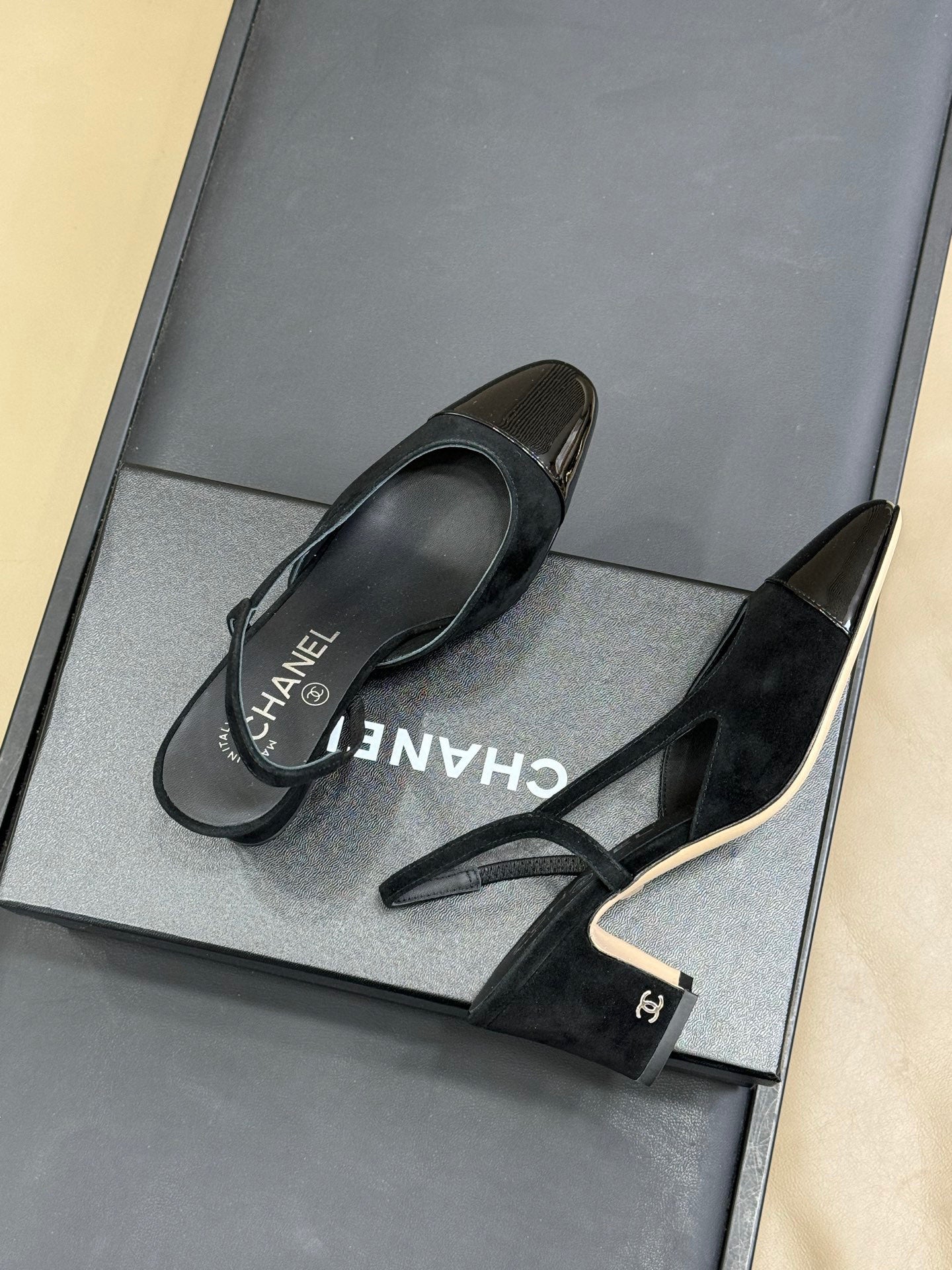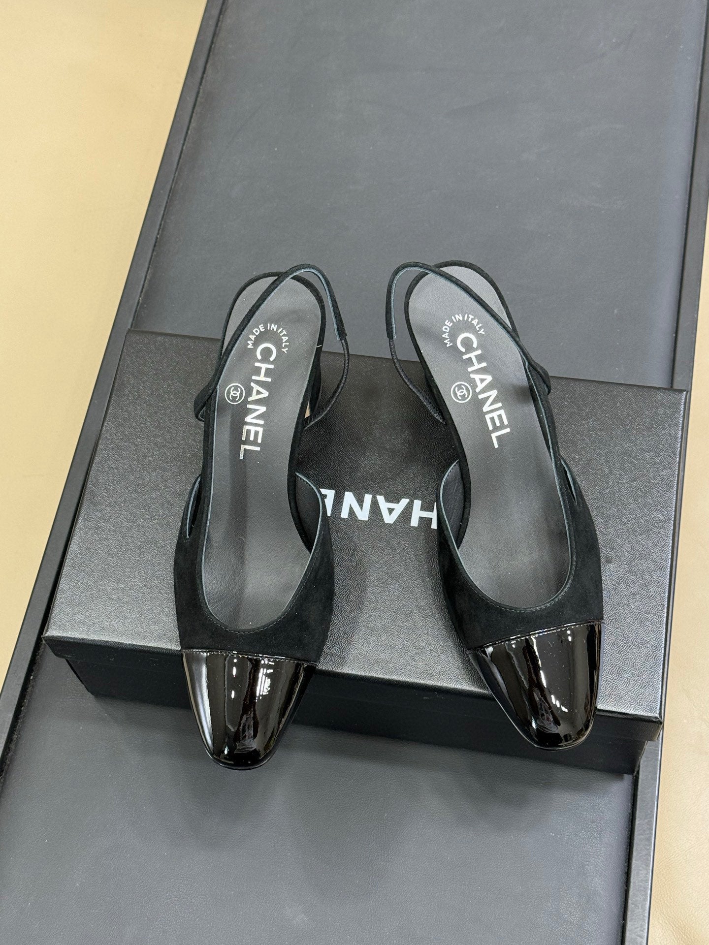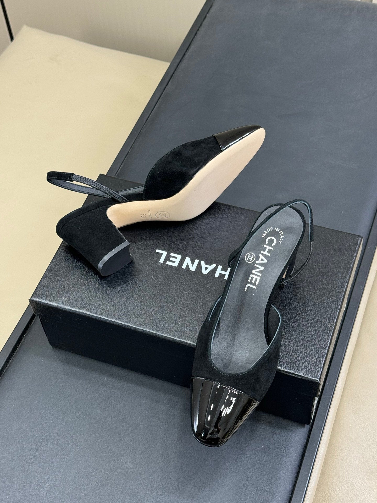CC SLINGBACK 25S IN BLACK SUEDE AND GLOSSY LEATHER
