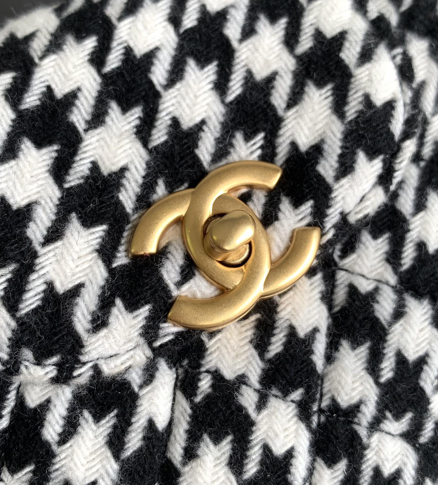 CC SMALL 20 KELLY SHOPPER BLACK MIX WHITE TWEED BRUSHED GOLD HARDWARE