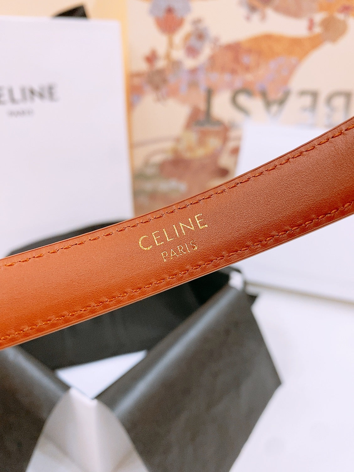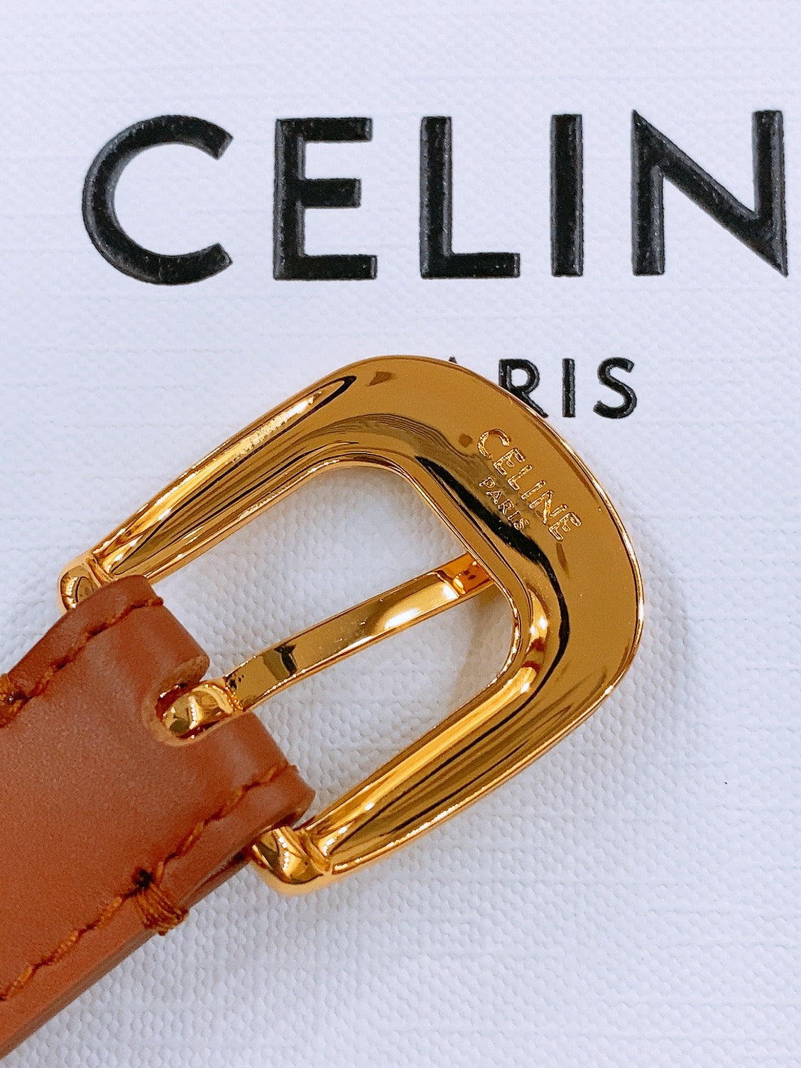 CELINE 25S BELT 18MM WITH ARC DE TRIOMPHE BUCKLE IN DARK CARAMEL 571504