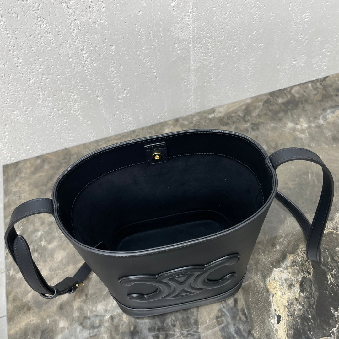 CELINE 25S CUIR TRIOMPHE BAG 30 IN BLACK CALFSKIN
