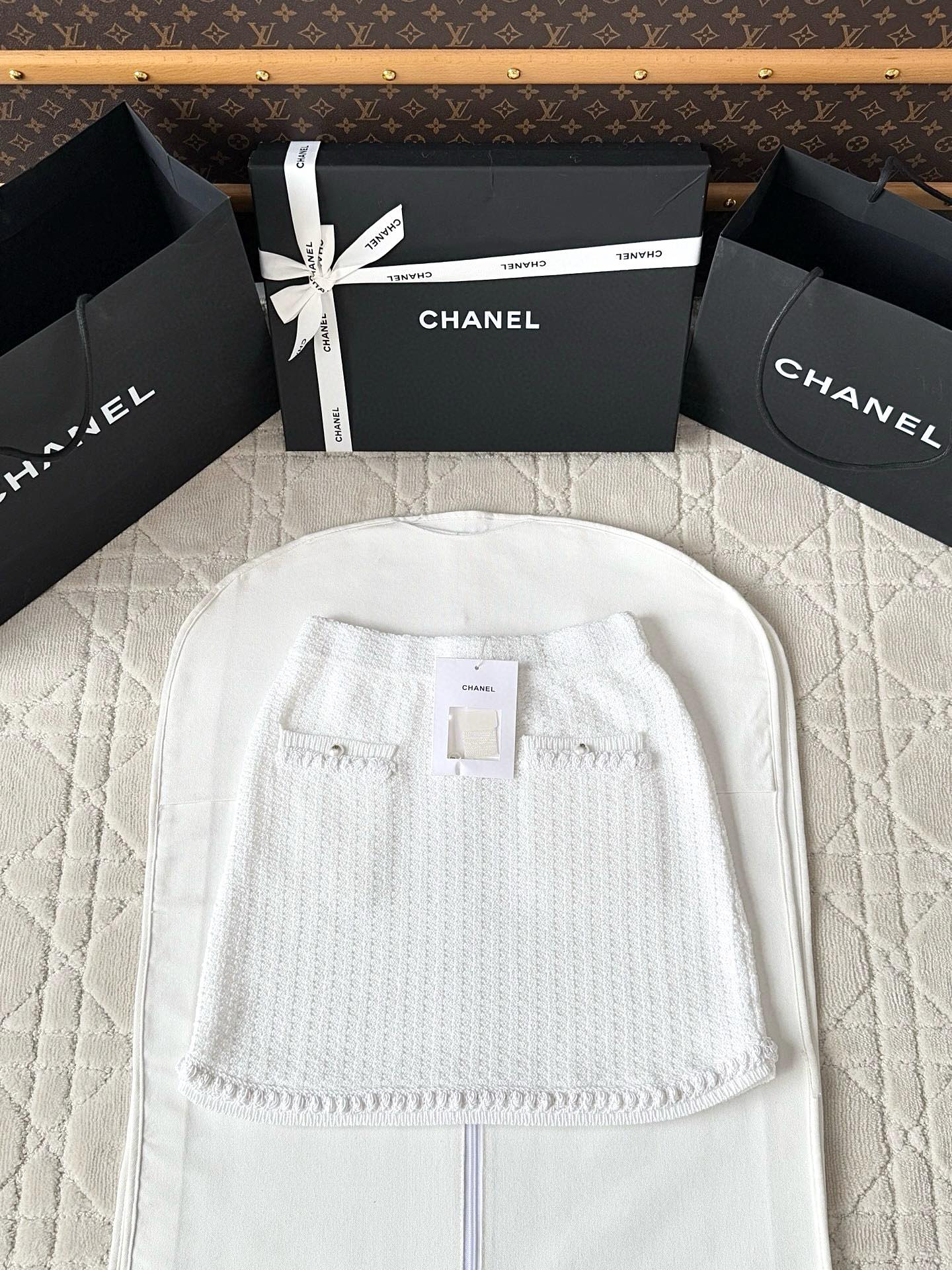Chanel 25P Mini Skirt White Tweed 237298
