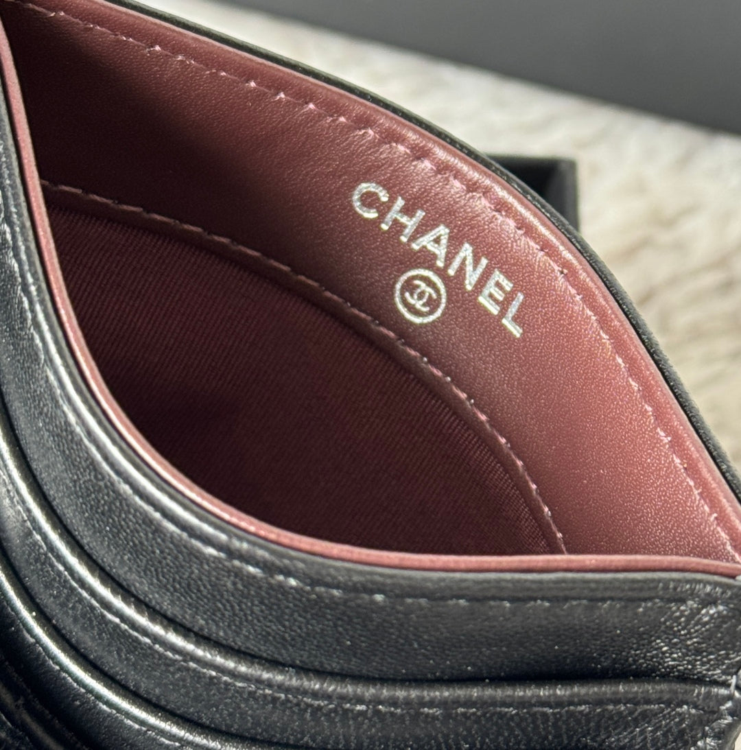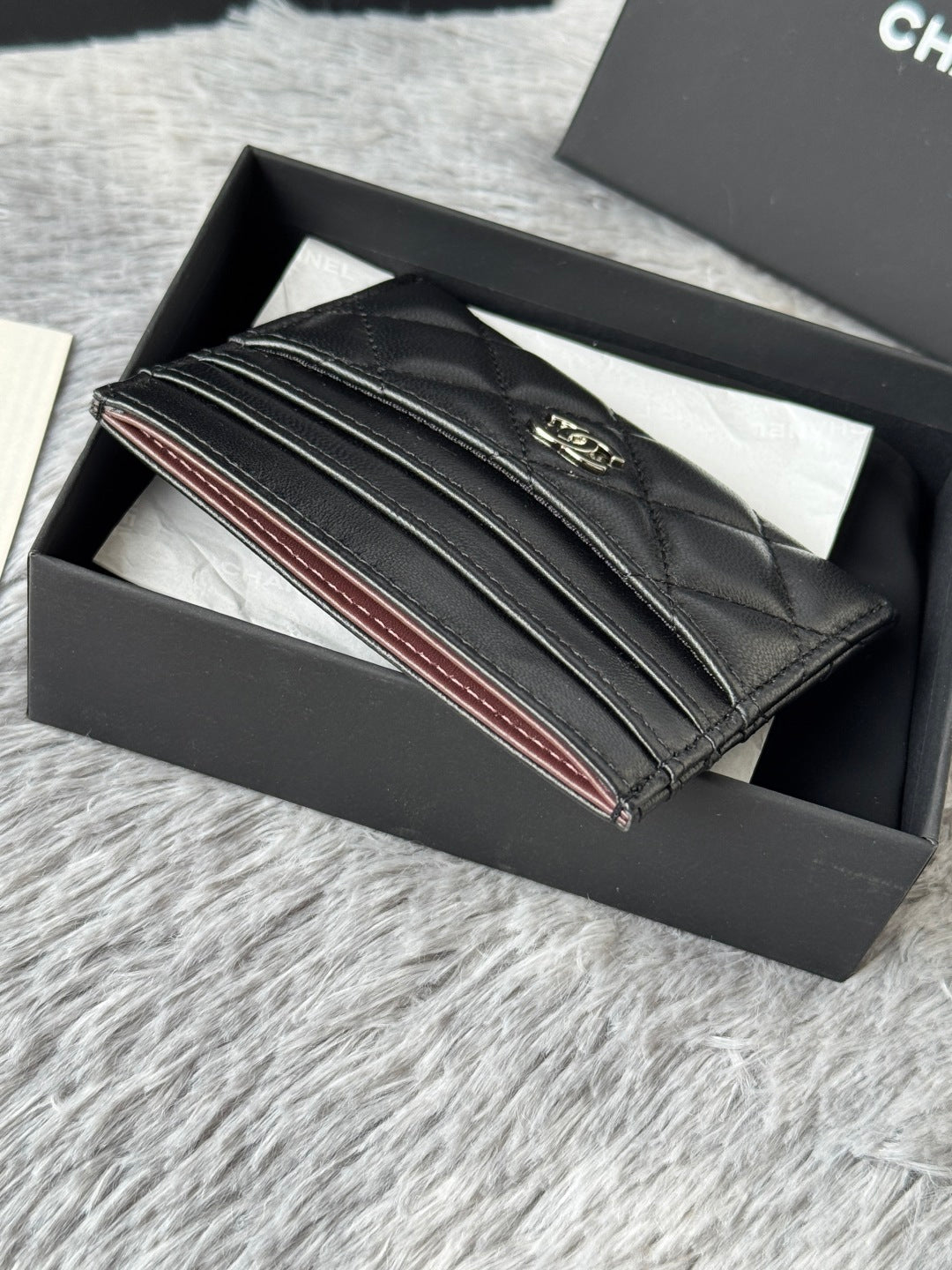 CHANEL 25S CARD HOLDER 11 IN BLACK LAMBSKIN SILVER HARDWARE
