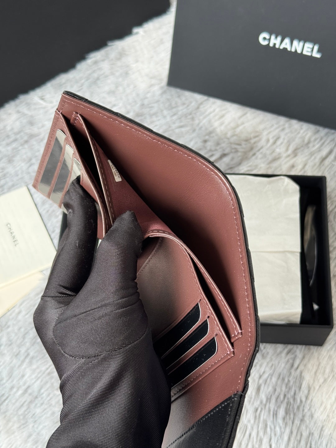 CHANEL 25S CF SMALL TRI FOLD WALLET 11 IN BLACK LAMBSKIN SILVER HARDWARE