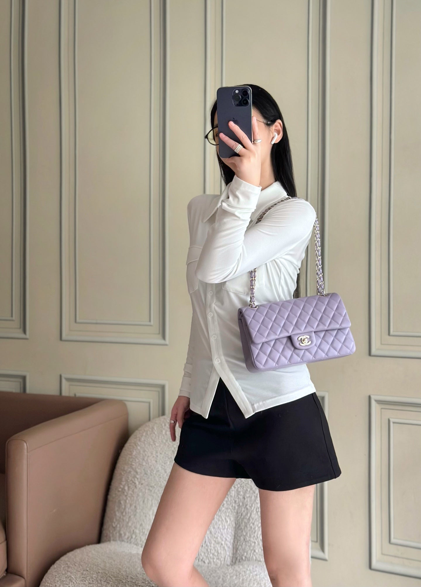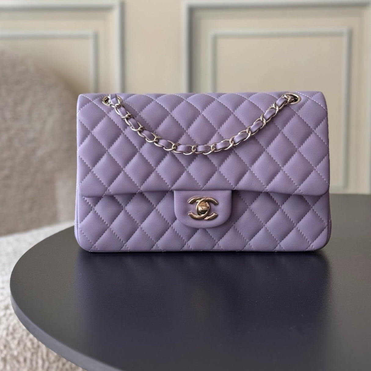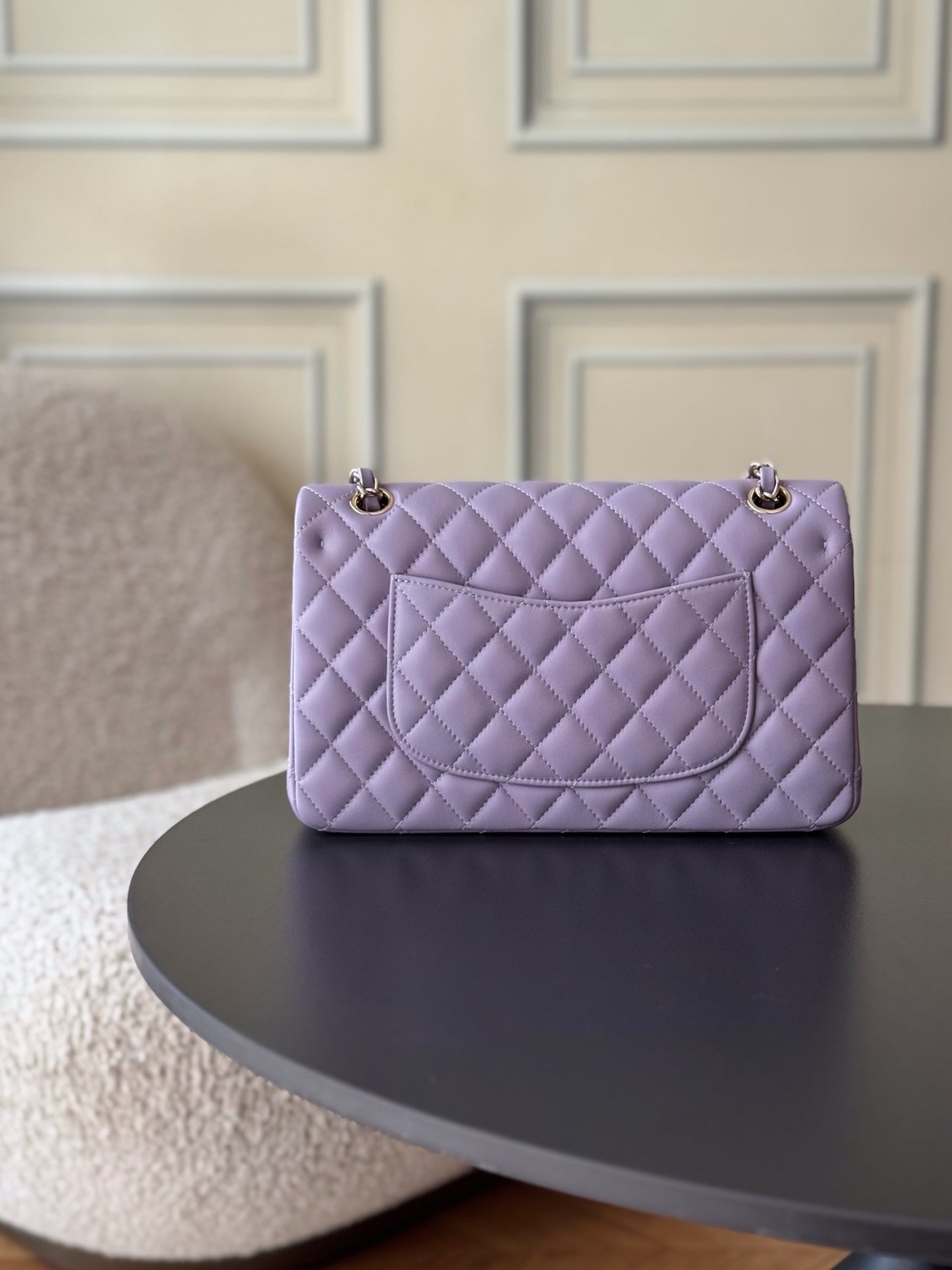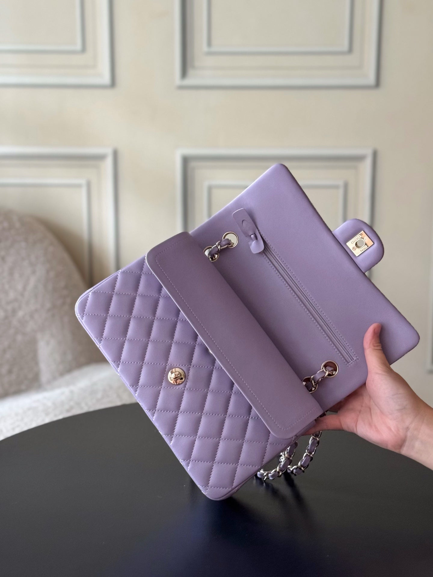 CHANEL 25S CLASSIC FLAP BAG 25 CM IN LIGHT PURPLE LAMBSKIN WITH GOLD HARDWARE