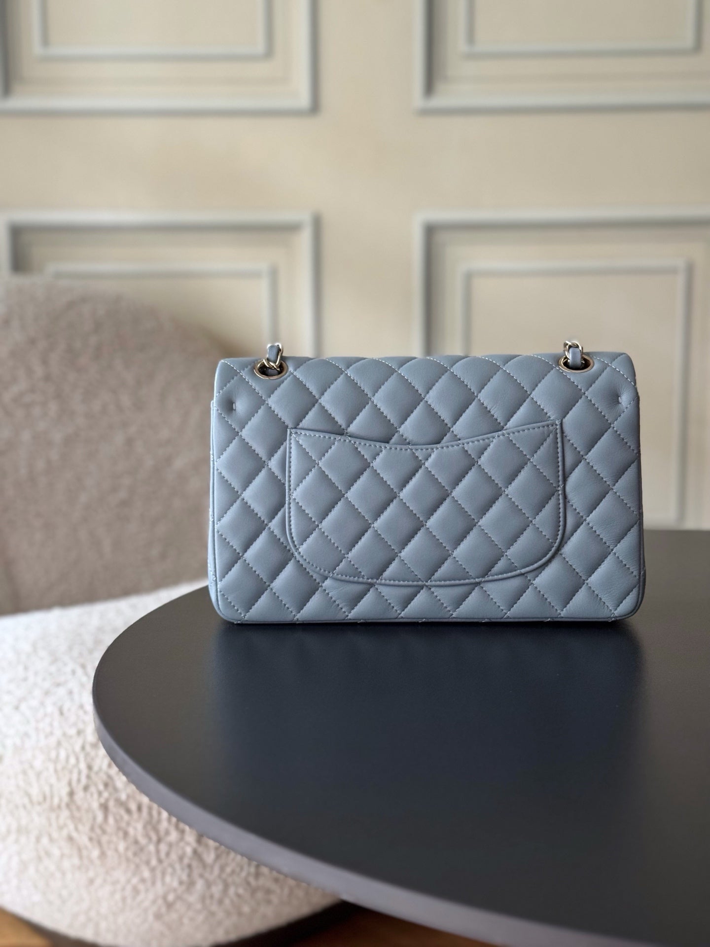 CHANEL 25S CLASSIC FLAP BAG 25 CM IN SLATE BLUE GRAY LAMBSKIN WITH GOLD HARDWARE