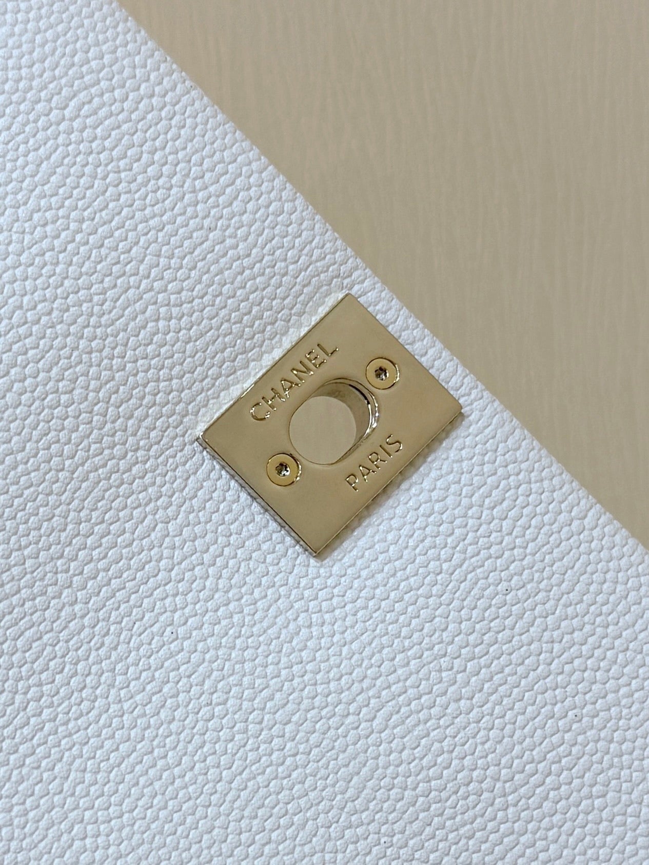 CHANEL 25S COCO CRUSH HANDLE 18 IN WHITE CALFSKIN GOLD HARDWARE