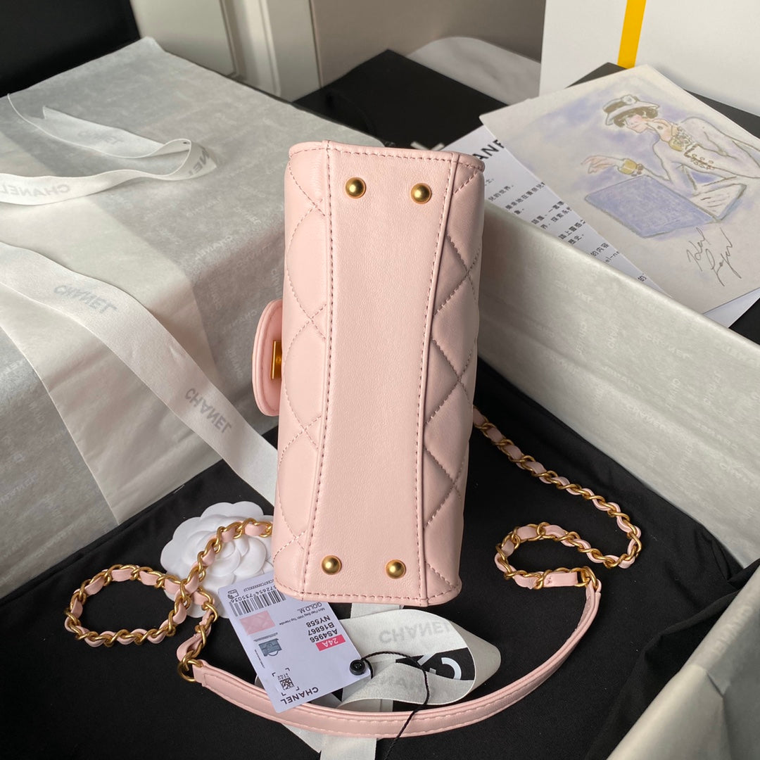 CHANEL 25S FLAP BAG 18 CM IN LIGHT PINK LAMBSKIN WITH TOP HANDLE
