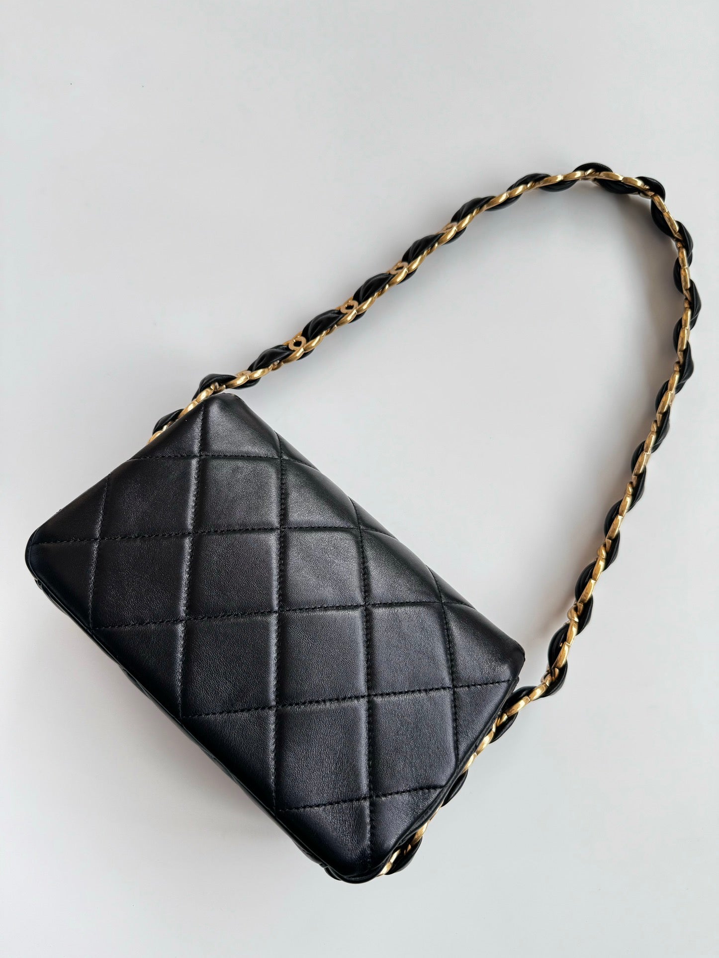 CHANEL 25S FLAP BAG 20 CM IN BLACK LAMBSKIN WITH GOLD HARDWARE