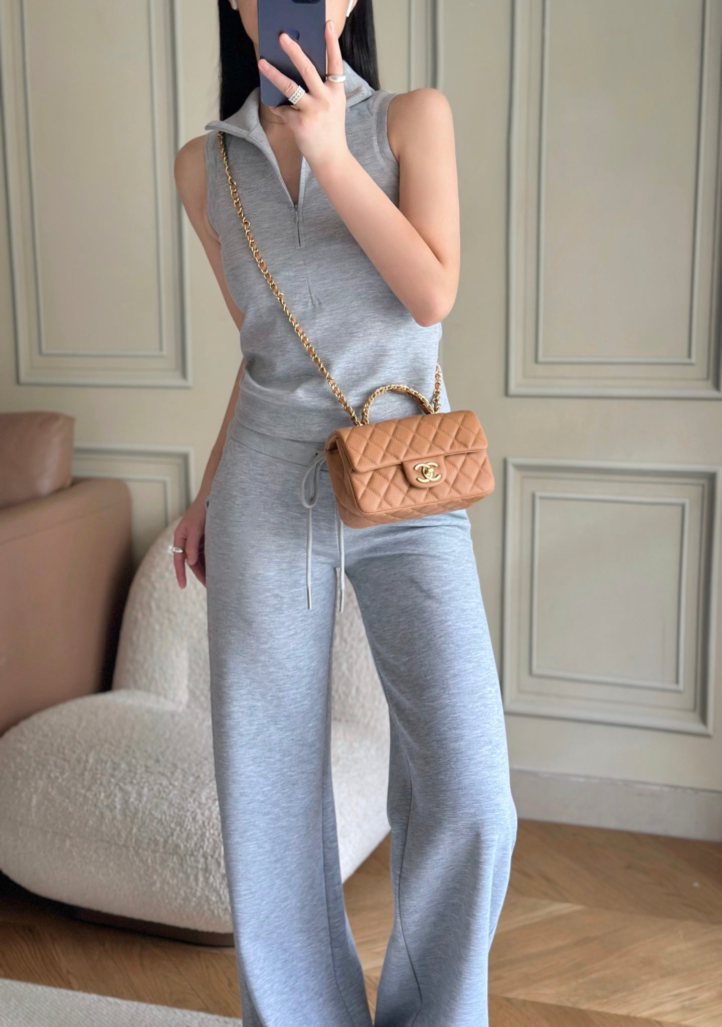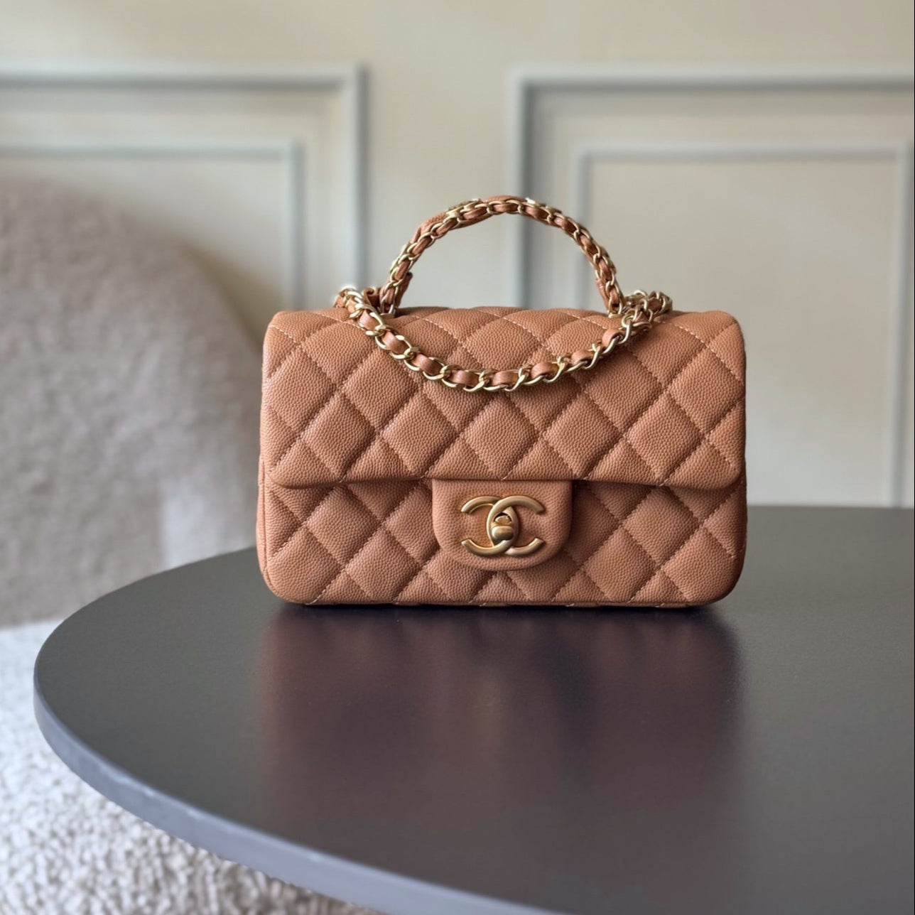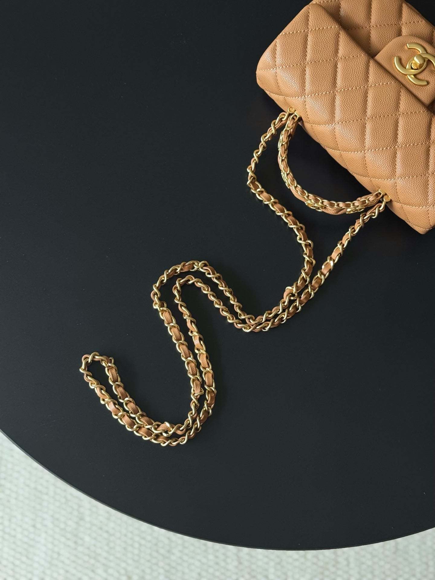 CHANEL 25S FLAP BAG 20 CM IN LIGHT BROWN CAVIAR LEATHER WITH GOLD HARDWARE