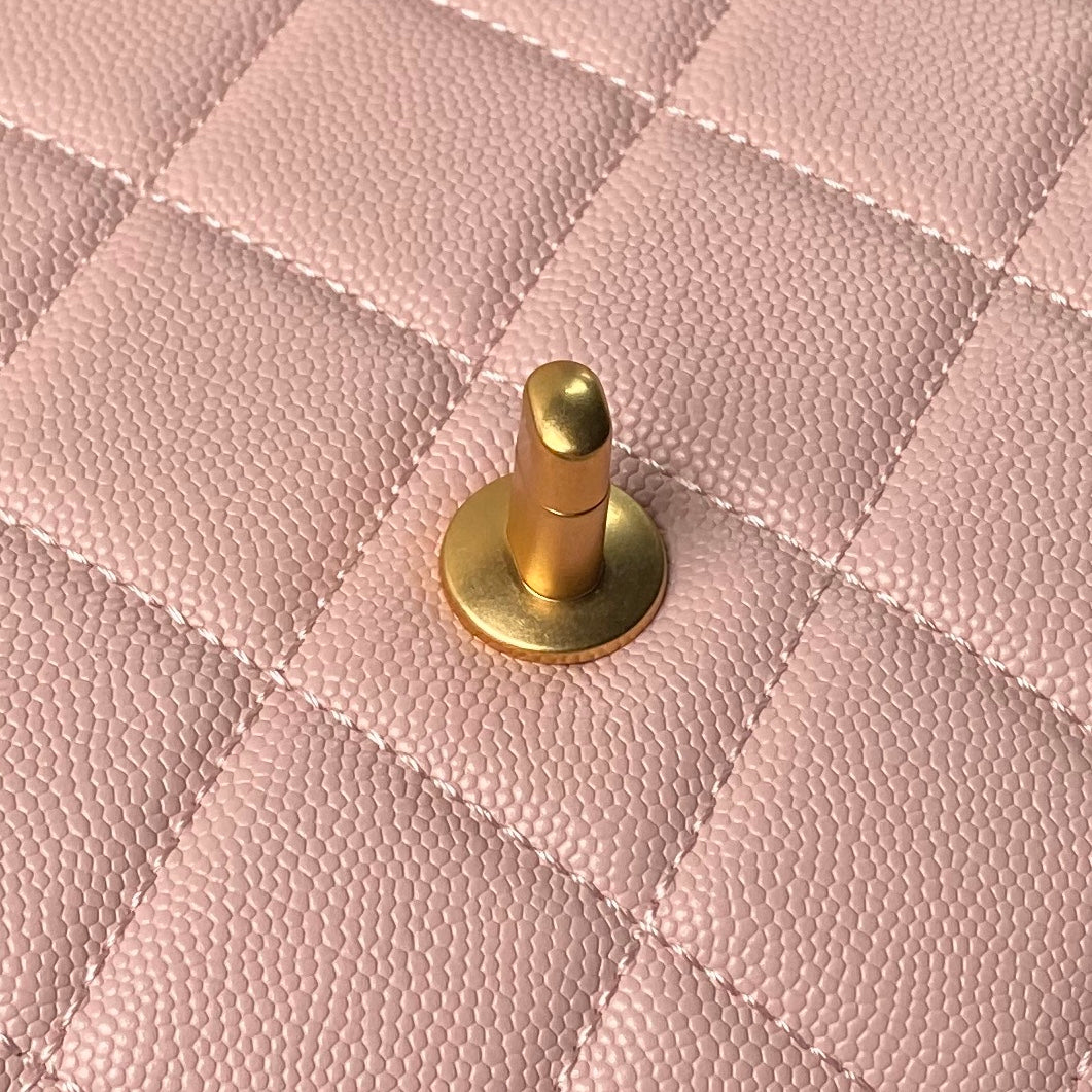 CHANEL 25S FLAP BAG 21 CM IN LIGHT PINK GRAINED LAMBSKIN WITH TOP HANDLE
