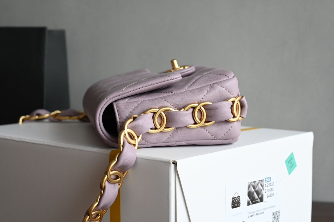 CHANEL 25S FLAP BAG 21 CM IN LIGHT PURPLE LAMBSKIN WITH GOLD HARDWARE