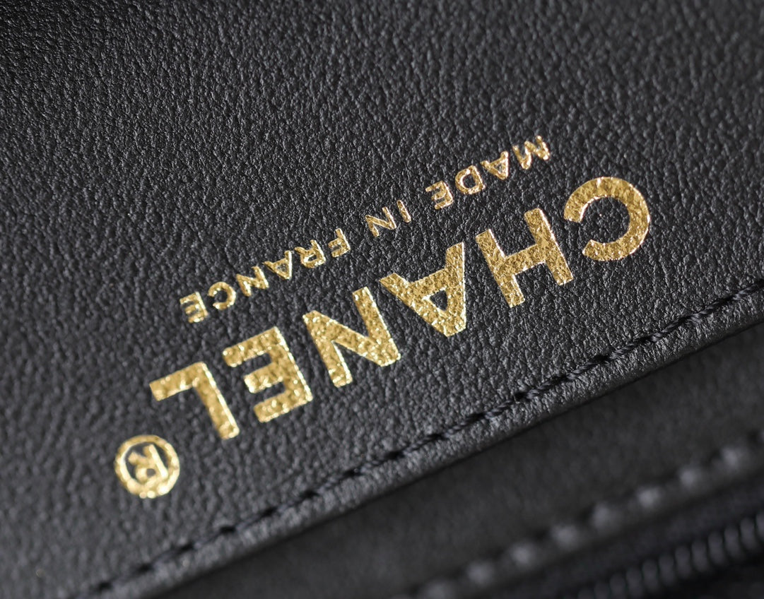 CHANEL 25S FLAP BAG 25 CM IN BLACK LAMBSKIN WITH GOLD HARDWARE