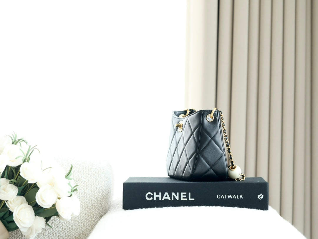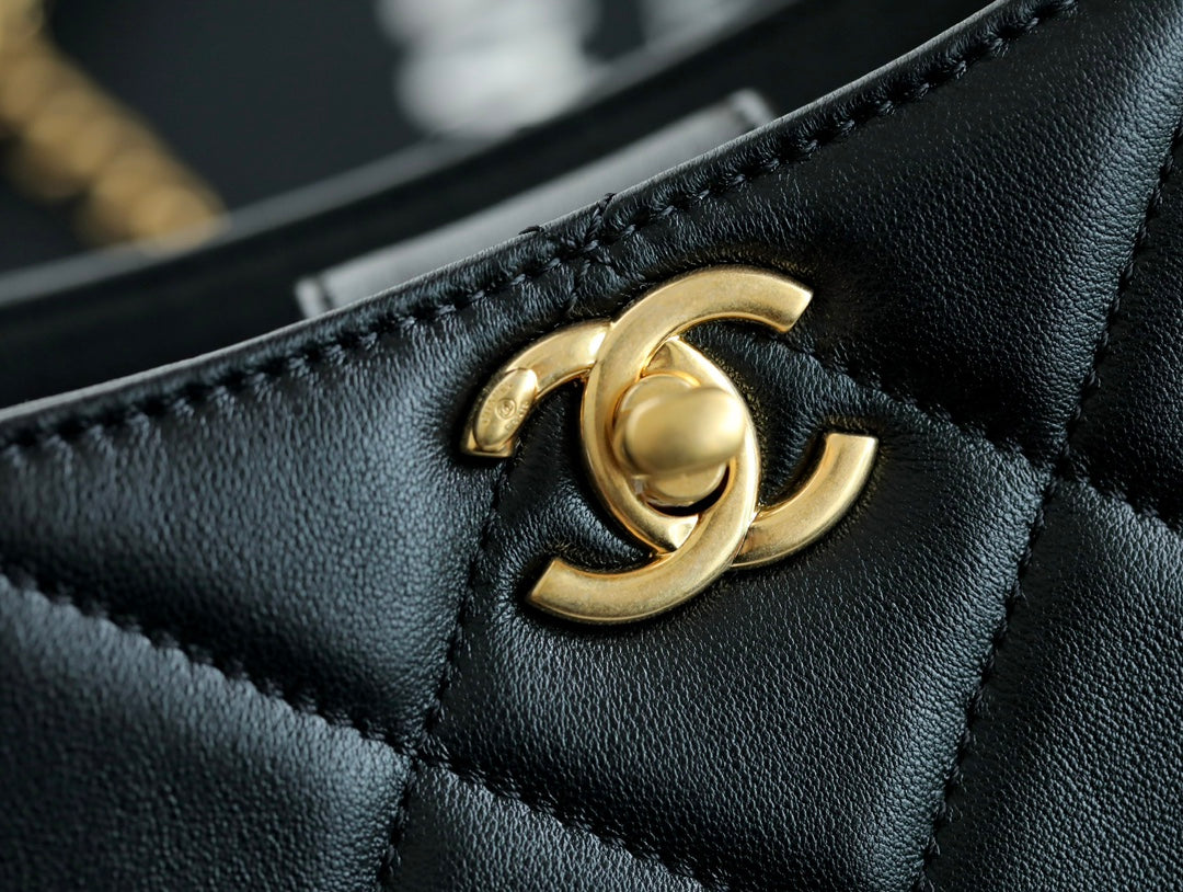 CHANEL 25S HOBO BAG 19.5 CM IN BLACK CALFSKIN WITH GOLD HARDWARE